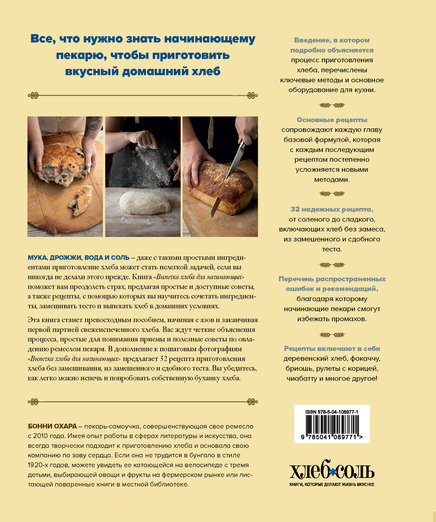Новое оформление книги «Выпечка хлеба для начинающих». Выпекание хлеба - настолько естественный природный процесс, что можно легко ощутить его медитативную связь с прошлыми веками. Сочетание пшеницы - самой сущности земли - с водой, морской солью, воздушными дрожжами и огнем рождает алхимию, которая превращает приготовление хлеба в нечто значительно большее, чем может показаться на первый взгляд. Процесс выпекания хлеба - настоящая ода человечеству и нашей способности творить магию собственными руками. Когда автор захотела печь хлеб для своей семьи, она столкнулась с определенными проблемами: часть книг о хлебе была рассчитана явно не на новичков, в других требовалось дорогостоящее оборудование, третьи были написаны слишком наукообразным языком и тяжелы для восприятия. Все это подвигло Бонни Охара на написание собственной книги с простыми, понятными рекомендациями и такими же нехитрыми рецептами, доступными даже тому, кто прежде никогда не занимался выпечкой. В книге вы увидите четыре главы по типу хлеба: хлеб, не требующий замеса (фокачча, пицца, фугасс), хлеб, требующий замеса (деревенский хлеб, хлеб с изюмом и грецкими орехами, хлеб с пармезаном и черным перцем, овсяный хлеб с коричневым сахаром), сдобная выпечка (бриошь с апельсиновой водой, булочки с корицей, шоколадная бабка, хала) и хлеб на закваске или опаре (багеты, дрожжевой хлеб и др.). Вам также помогут пошаговые фотографии и руководство по решению возможных проблем, указание количества хлеба или порций, время на подготовку, неактивное время и время на выпечку. Вкусного вам хлеба!| Издательство | ООО "Издательство "Эксмо" |