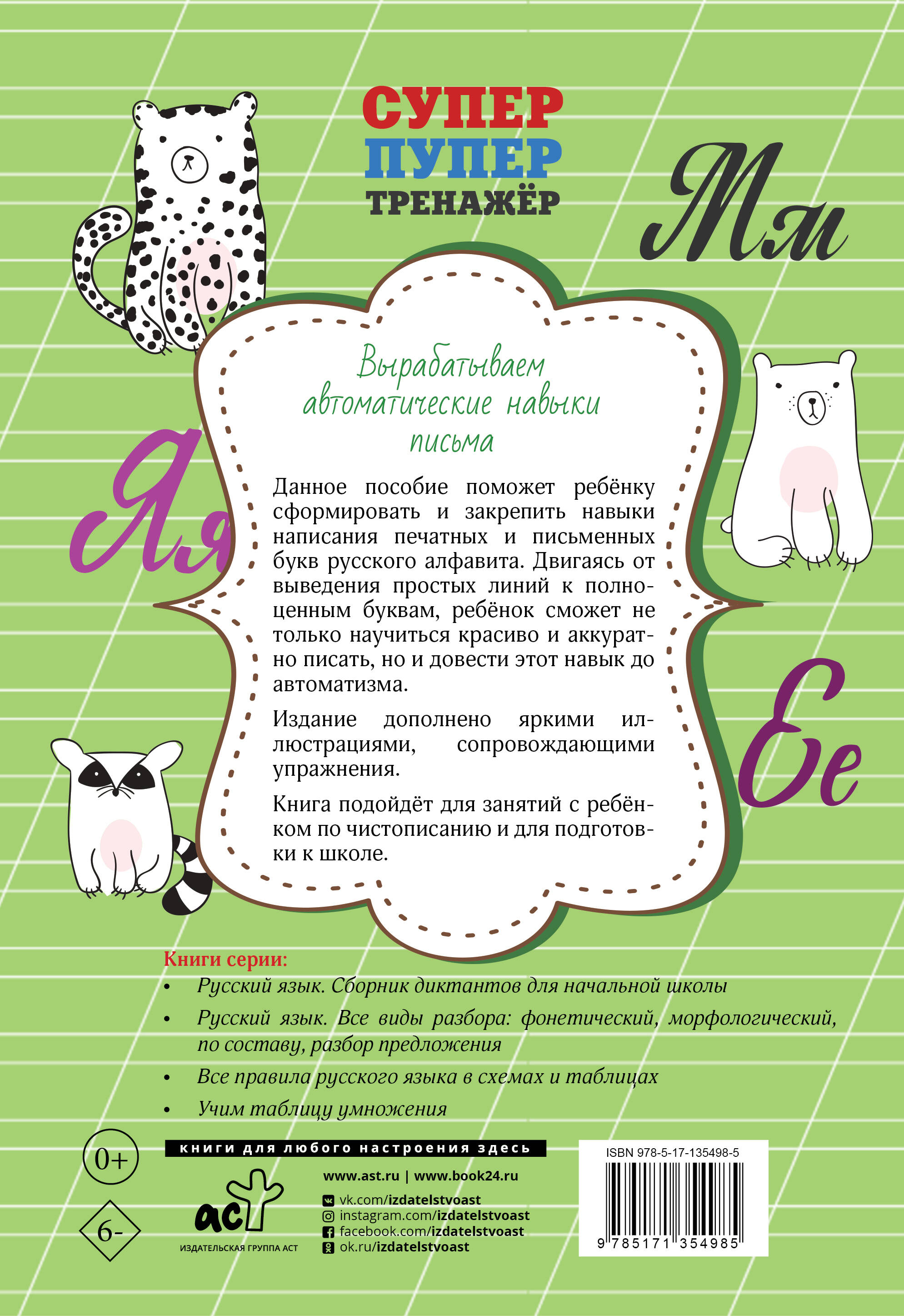 Это пособие поможет сформировать и закрепить навыки написания печатных и письменных букв русского алфавита. Материал расположен по принципу "от простого к сложному". Двигаясь от выведения простых линий к полноценным буквам, ребенок сможет не только научиться красиво и аккуратно писать, но и довести этот навык до автоматизма. Издание дополнено яркими иллюстрациями, сопровождающими упражнения. Книга подойдет для занятий с ребенком по чистописанию и для подготовки к школе.
