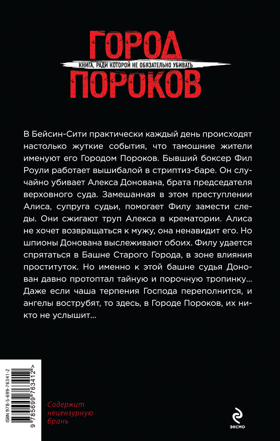 В Бейсин-Сити практически каждый день происходят настолько жуткие события, что тамошние жители именуют его Городом Пороков. Бывший боксер Фил Роули работает вышибалой в стриптиз-баре. Он случайно убивает Алекса Донована, брата председателя верховного суда. Замешанная в этом преступлении Алиса, супруга судьи, помогает Филу замести следы. Они сжигают труп Алекса в крематории. Алиса не хочет возвращаться к мужу, она ненавидит его. Но шпионы Донована выслеживают обоих. Филу удается спрятаться в Башне Старого Города, в зоне влияния проституток. Но именно к этой башне судья Донован давно протоптал тайную и порочную тропинку… Даже если чаша терпения Господа переполнится, и ангелы вострубят, то здесь, в Городе Пороков, их никто не услышит…