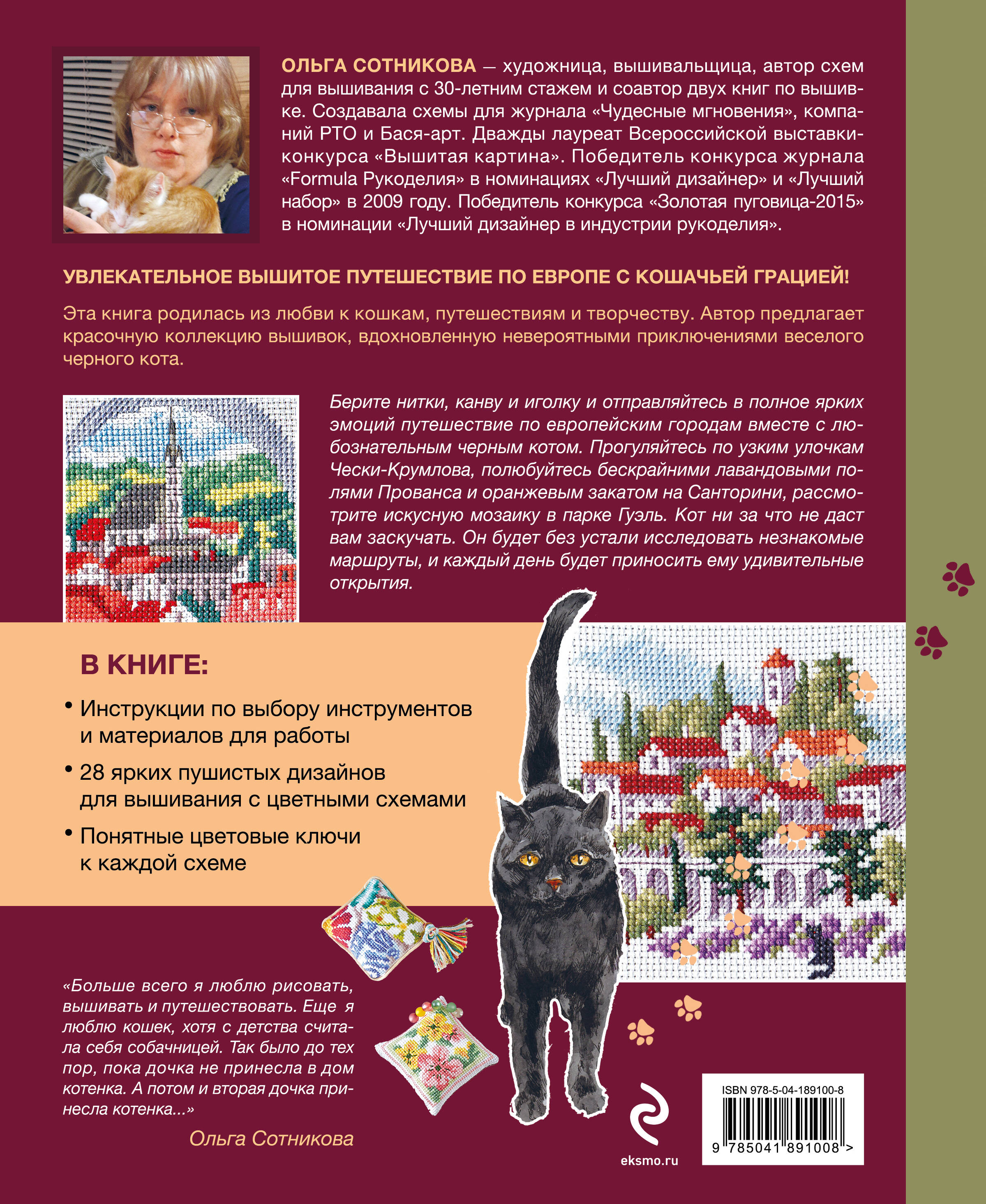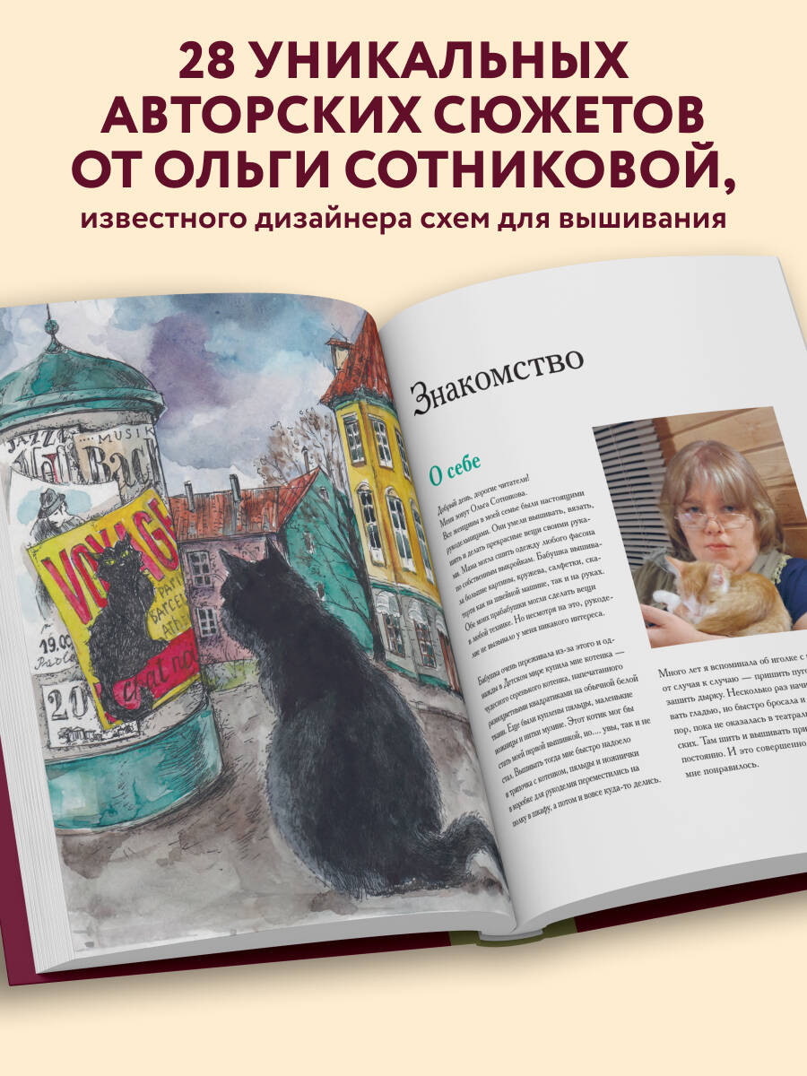 Увлекательное вышитое путешествие по Европе: от Парижа до Барселоны! Эта книга родилась из любви к путешествиям, творчеству и кошкам. Вдохновленная невероятными приключениями и уникальными характерами этих пушистых созданий, автор предлагает коллекцию вышивок, каждая из которых расскажет свою особенную историю. Автор книги Ольга Сотникова - художница, вышивальщица и автор схем для вышивания с 30-летним стажем. В этой книге она собрала красочную коллекцию дизайнов, вдохновленную невероятными приключениями веселого черного кота. Берите нитки, канву и иголку и отправляйтесь в полное ярких эмоций путешествие по европейским городам с кошачьей грацией! В книге: • Инструкции по выбору инструментов и материалов для работы. • 28 ярких пушистых дизайнов для вышивания с цветными схемами. • Понятные цветовые ключи к каждой схеме. Кот ни за что не даст вам заскучать. Он будет без устали исследовать незнакомые маршруты, и каждый день будет приносить удивительные открытия!