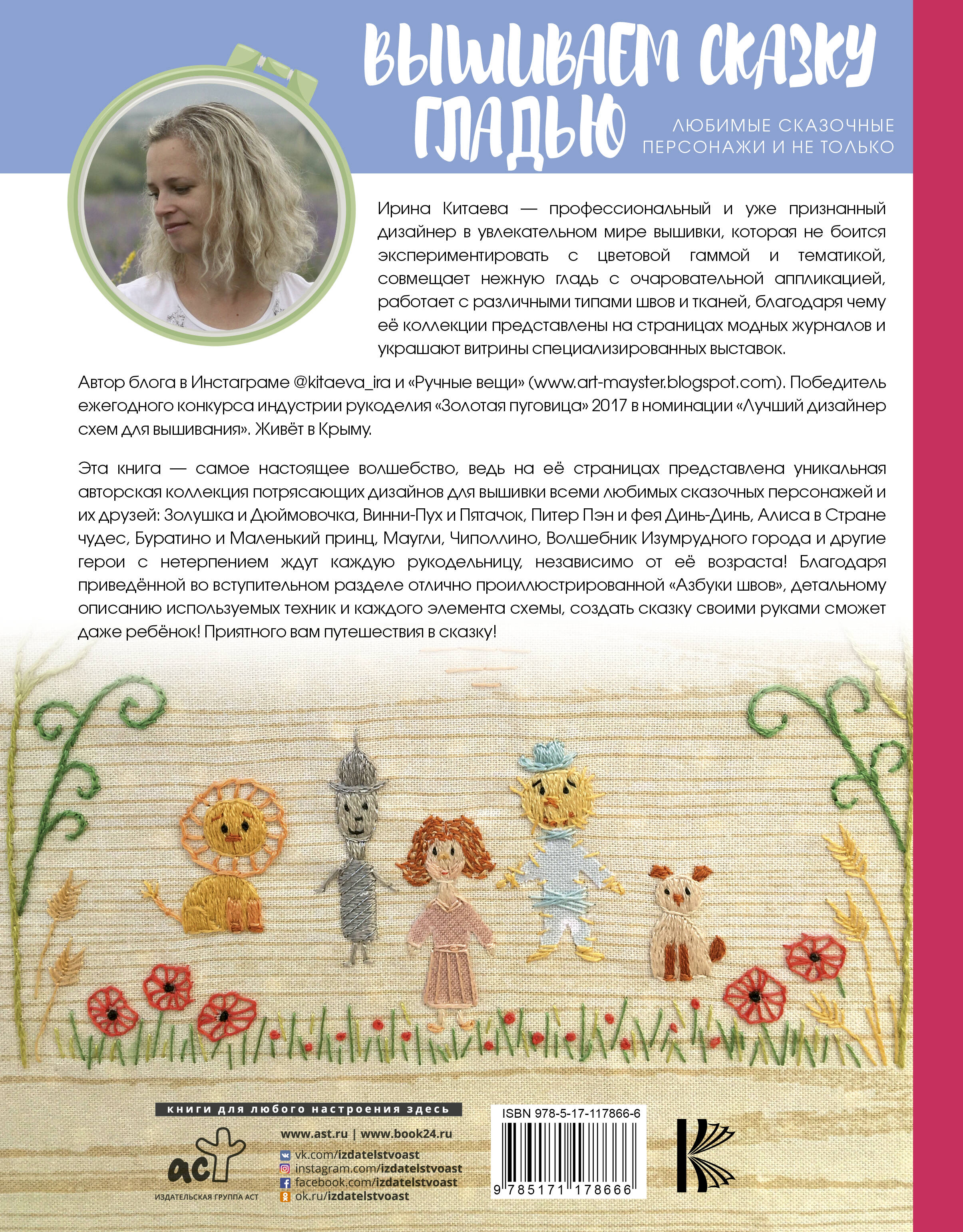 Эта книга - самое настоящее волшебство, ведь на её страницах представлена уникальная авторская коллекция потрясающих дизайнов для вышивки всеми любимых сказочных персонажей: Золушка и Дюймовочка, Винни-Пух и Пятачок, Питер Пэн и фея Динь-Динь, Алиса из Страны Чудес, Буратино и Маленький принц, Маугли, Чиполлино, друзья из Изумрудного Города и другие герои с нетерпением ждут каждую рукодельницу, независимо от её возраста! Благодаря приведённой во вступительном разделе отлично проиллюстрированной "Азбуки Швов", детальному описанию используемых техник и каждого элемента схемы, создать сказку своими руками сможет даже ребёнок! Приятного вам путешествия в сказку!| Издательство | ИЗДАТЕЛЬСТВО "АСТ" |