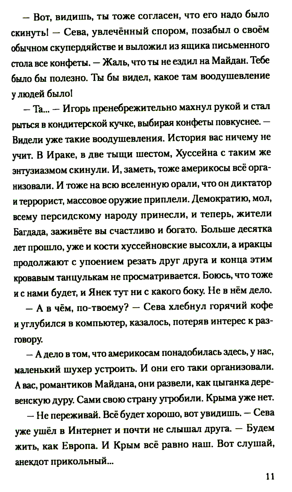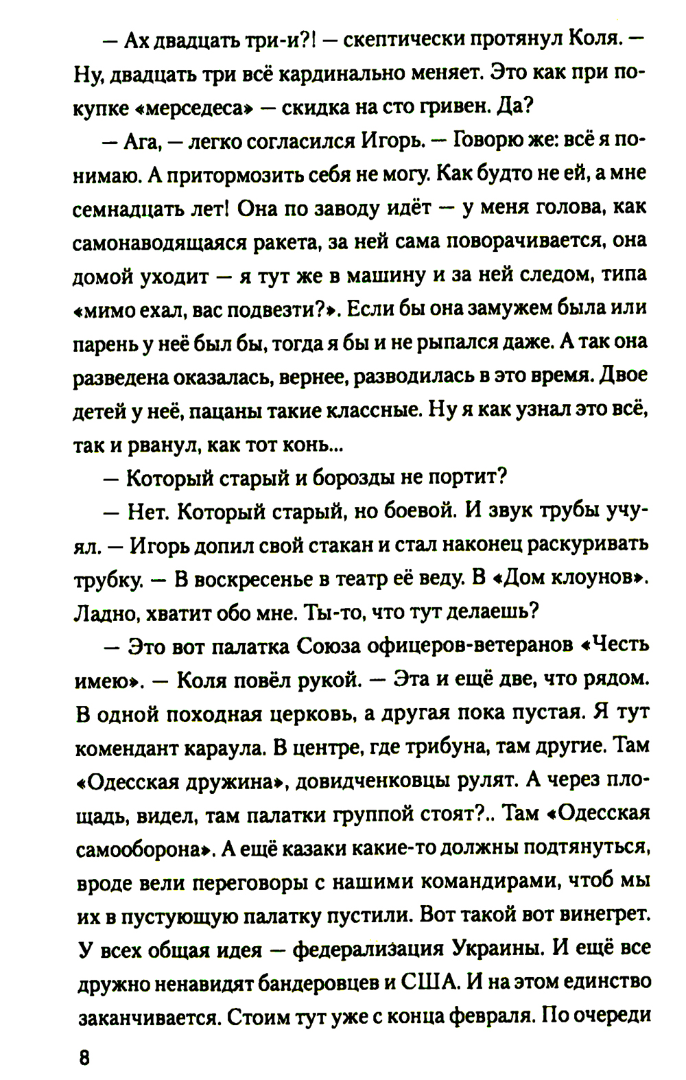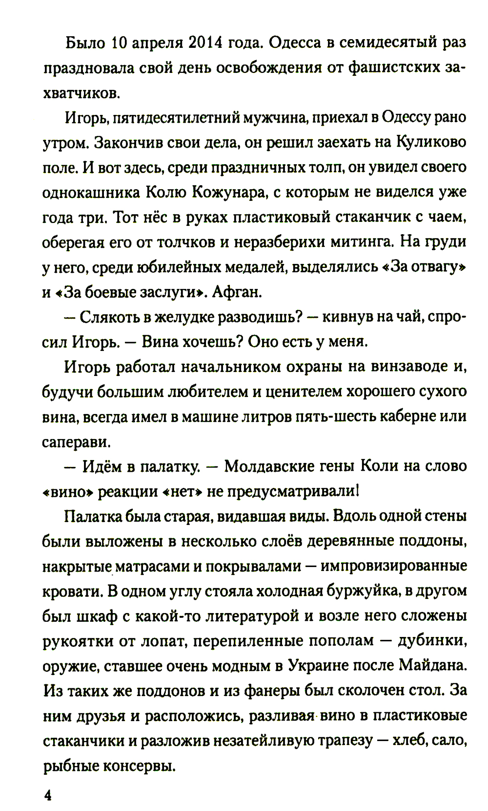 В новом авторском сборнике Игоря Немодрука представлены произведения, написанные под впечатлением важных и трагических событий, захлестнувших его родную Украину в последние десятилетия. Художественно-документальная повесть «Поле Куликово» рассказывает о событиях весной 2014 года в Одессе, в том числе и о трагедии в Доме профсоюзов. Автор сам был участником этих событий, поэтому подробно и без прикрас сумел рассказать о них. Все герои повести - реальные люди, а события описаны так, как это происходило на самом деле. Действие рассказа « Выстрел » происходит на Донбассе, весной 2016 года. Главный герой - обыкновенный зрелый мужчина, доброволец, совсем не военный. Его обучают снайперскому делу, хотя до этого он винтовку видел только на картинках. I la полигоне у него всё получается на «отлично», однако первый же боевой выезд в район города Докучаевска в корне меняет отношение главной) героя не только к войне, но и к жизни вообще. Повесть «Светка, Джинн и ЦРУ» - это светлая, немного ироничная, но очень человечная и добрая фантазия, пронизанная искренней любовью и сочувствием к страданиям родной страны, павшей жертвой интриг и бесчинств «мирового гегемона», на тему «как всё можно было бы исправить, если бы...».| Издательство | Вече |