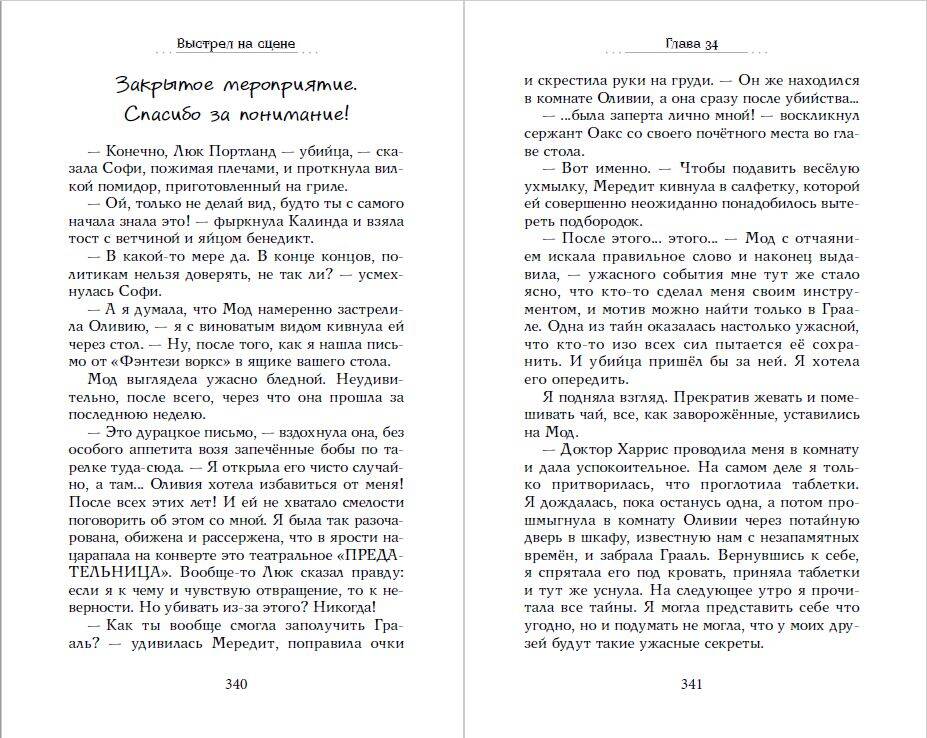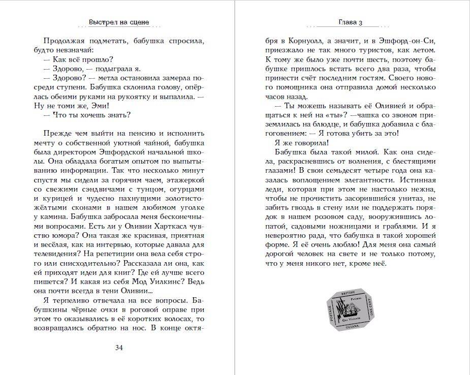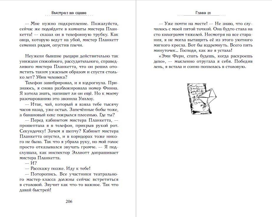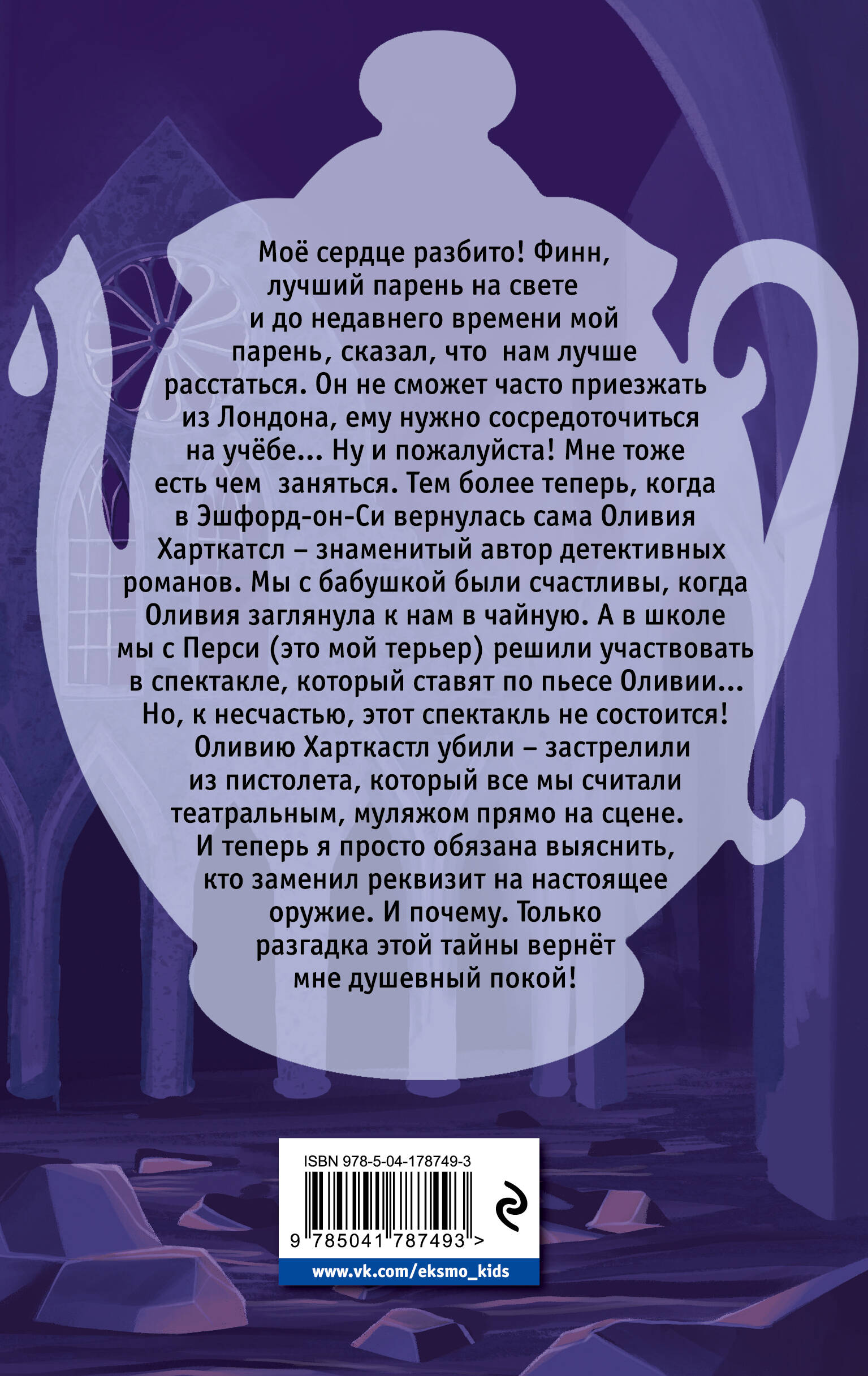 Прекрасный подарок для любителей детских детективов, загадок и приключений! Книга понравится тем, кто уже прочитал «Мейзи Хитчинс» и ищет новую историю с героями своего возраста. 14-ти летняя Эми Ферн расследует убийство знаменитой писательницы, погибшей прямо на сцене школьного театра… Моё сердце разбито! Финн, лучший парень на свете - и до недавнего времени мой парень, - сказал, что нам лучше расстаться. Он не сможет часто приезжать из Лондона, ему нужно сосредоточиться на учёбе… Ну и пожалуйста! Мне тоже есть чем заняться. Тем более теперь, когда в Эшфорд-он-Си вернулась сама Оливия Харткасл - знаменитый автор детективных романов. Мы с бабушкой были счастливы, когда Оливия заглянула к нам в чайную. А в школе мы с Перси (это мой терьер) решили участвовать в спектакле, который ставят по пьесе Оливии… Но, к несчастью, этот спектакль не состоится! Оливию Харткасл убили - застрелили из пистолета, который все мы считали театральным муляжом, - прямо на сцене. И теперь я просто обязана выяснить, кто заменил реквизит на настоящее оружие. И почему. Только разгадка этой тайны вернёт мне душевный покой!
