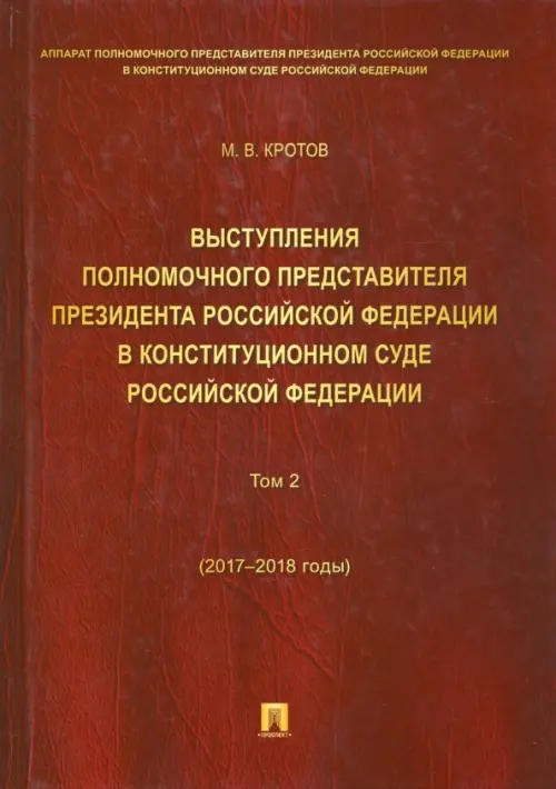 Аннотация: Выступления полномочного представителя Президента РФ в Конституционном Суде РФ. 2017-2018 гг. Том 2