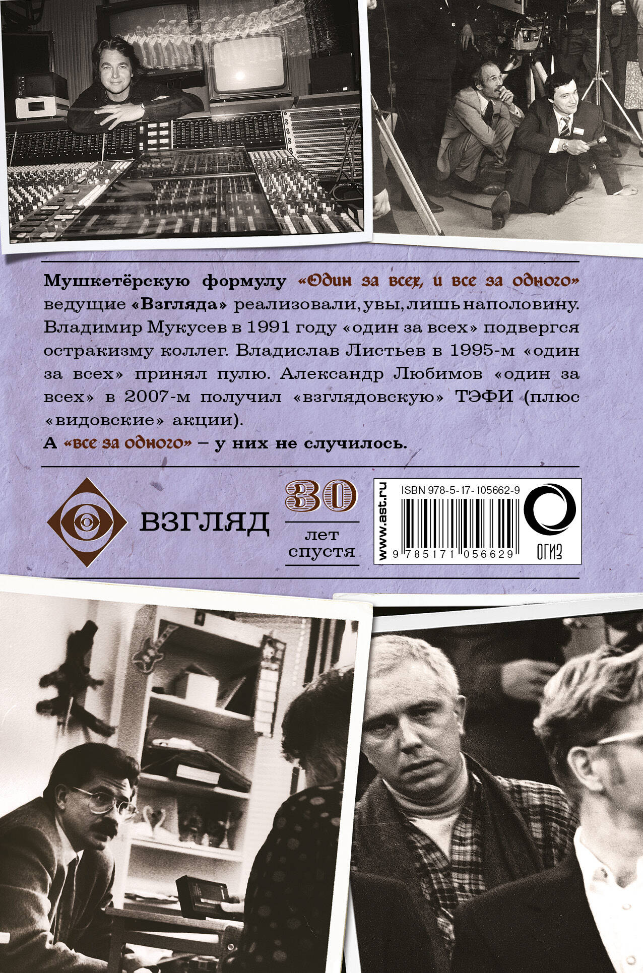 Мушкетёрскую формулу "Один за всех, и все за одного" ведущие "Взгляда" реализовали, увы, лишь наполовину. Владимир Мукусев в 1991 году "один за всех" подвергся остракизму коллег. Владислав Листьев в 1995-м "один за всех" принял пулю. Александр Любимов "один за всех" в 2007-м получил "взглядовскую" ТЭФИ (плюс "видовские" акции). А "все за одного" - у них не случилось. Книга основана на материалах, которые Евгений Ю. Додолев вместе с Ларисой Кривцовой собирал для фильма "Был или не был?", что планировался к 20-летию гибели самого именитого "взглядовца" Владислава Листьева (2015 г.). Здесь собраны свидетельства телевизионщиков, работавших над самым знаменитым отечественным ТВ-проектом и оценки сторонних экспертов, которые журналист подготовил специально для этого издания.| Издательство | Издательство "АСТ" |