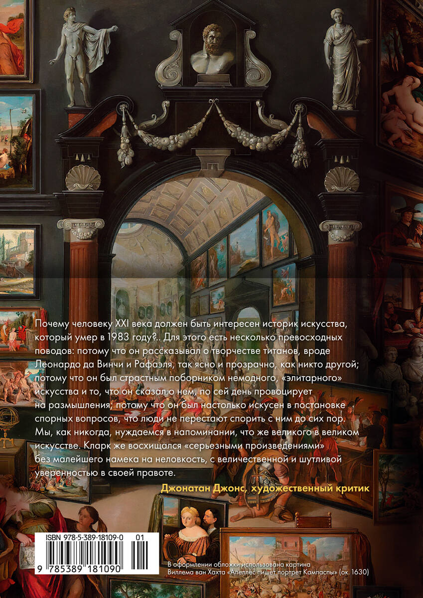 Кеннет Кларк (1903-1983) - британский писатель, историк, крупный специалист в области истории искусств и личность практически уникальная для искусствознания XX в. Самый молодой из директоров Лондонской национальной галереи, которую он возглавлял с 1934 по 1945 г., Кларк рано состоялся в качестве авторитетного ученого. Но идея истории искусства как знания для избранных была ему чужда, в связи с чем среди специальных трудов в обширном наследии Кеннета Кларка числится уникальный на тот момент цикл документальных фильмов "Цивилизация" (1969-1970), сценарии которого были позже опубликованы в виде книги. Сборник "Взгляните на картины" также адресован автором не только знатокам искусства, но и тем, кто ищет помощи и наставничества. В шестнадцати эссе маститый ученый с присущими ему невероятной эрудицией и мягким юмором проводит своих читателей тем путем, которым следуют его собственный глаз и изощренный ум, разглядывая картину. Цель этого упражнения - показать, сколь многое можно увидеть после того, как пройдет любительский восторг.| Издательство | Издательство АЗБУКА ООО |