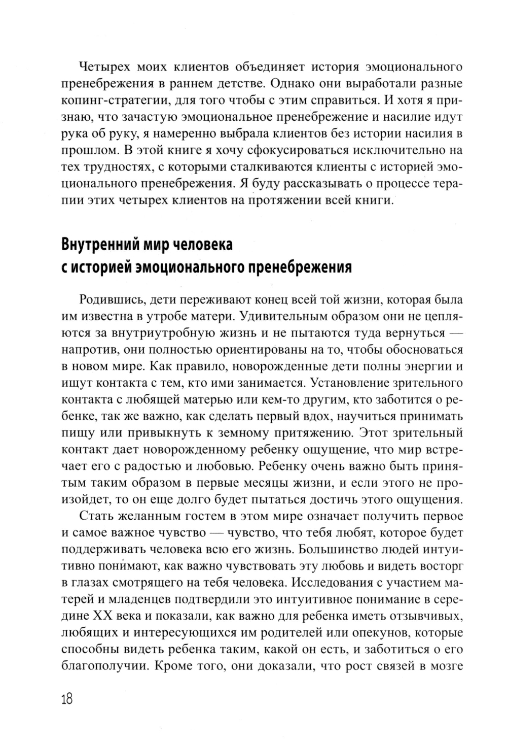 Люди, чьими чувствами, желаниями и потребностями пренебрегали в детстве, сталкиваются со множеством проблем во взрослом возрасте. Подобный опыт нередко сравнивают с насилием, однако это неправильно. Травматизация таких людей скорее сродни эмоциональному выгоранию, которое возникает, когда человек вынужден делать слишком многое при слишком малом количестве ресурсов. Автор рассказывает об особенностях функционирования такого рода клиентов и предлагает эффективные терапевтические стратегии и варианты психологической работы. Книга ориентирована на психотерапевтов, которые работают со взрослыми пациентами. Кроме того, она поможет тем, кто сам столкнулся с эмоциональным пренебрежением в детстве, лучше понять себя или своих близких с таким опытом.| Издательство | Генезис |