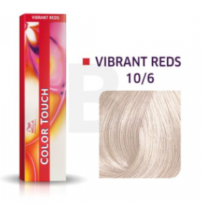 Wella Color Touch Vibrant Reds 10/6 - профессиональная полуперманентная краска для волос, создающая роскошный светлый блондин с интенсивным красновато-фиолетовым подтоном. Формула обеспечивает насыщенный, сияющий цвет без аммиака и заботится о здоровье волос.