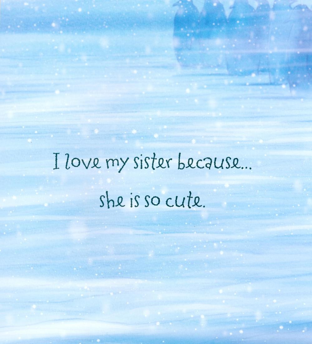 Featuring children's own words and heart-warming pictures, this book is the perfect gift for a sister, or for children expecting a new sibling. (This ebook is optimised for Kindle tablets and the Kindle App. It is not suitable for e-Ink kindle devices, such as the PaperWhite. We recommend you download a sample to your device before purchase if in doubt.) I love my sister because... Everyone's sister is the best. And who better to tell the world than children themselves? This charming book combines endearing things said by children about their sisters with gentle illustrations of familiar animals. The text is amusing and insightful, with reasons why sisters are loved by their siblings. With beautiful pictures and charming words from children all about sisters it's just right to give to your sister and to read together!| Издательство | Harper Collins |