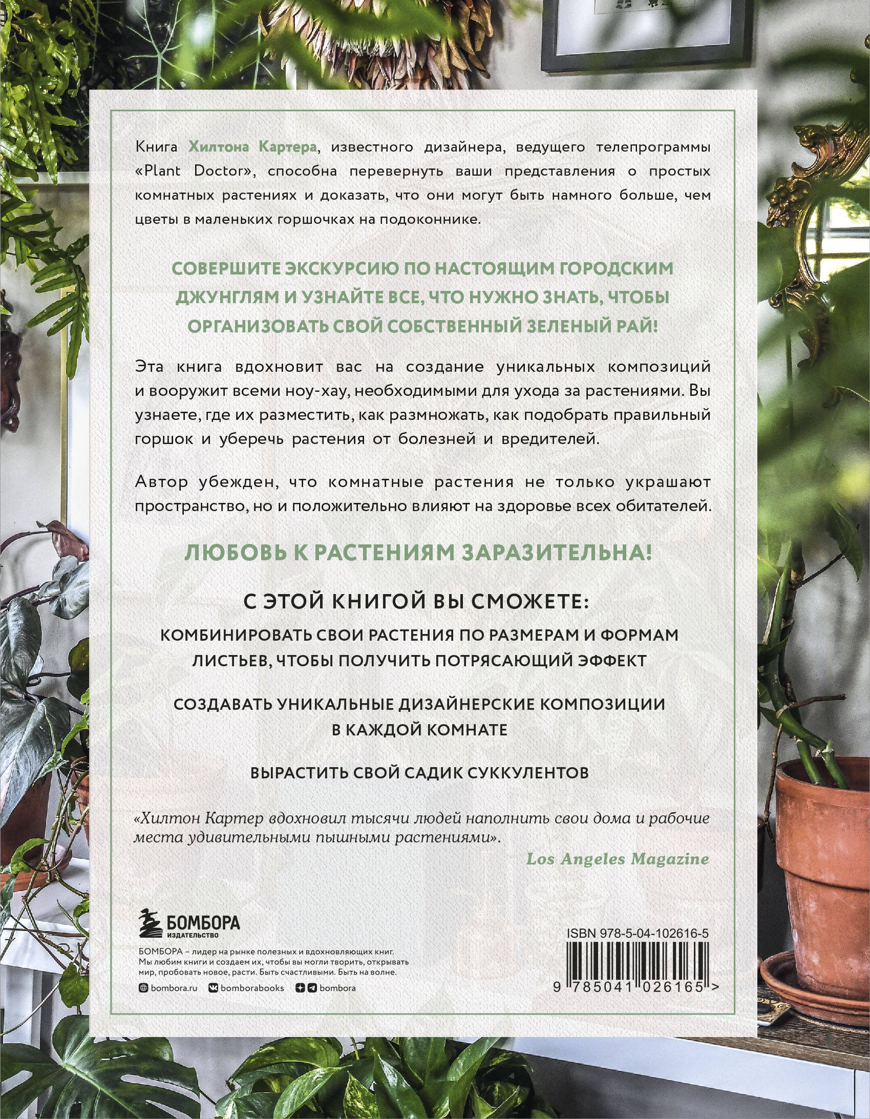 Любовь к растениям заразительна! Книга Хилтона Картера, известного дизайнера, ведущего телепрограммы «Plant Doctor», способна перевернуть ваши представления о простых комнатных растениях и доказать, что они могут быть намного больше, чем цветы в маленьких горшочках на подоконнике. Совершите экскурсию по собственной квартире автора, заполненной огромным множеством цветущих растений, и узнайте все, что нужно знать, чтобы создать свои собственные городские джунгли. Как владелец более 300 растений, Хилтон глубоко понимает роль растений в своем доме - они не только украшают пространство, но и положительно влияют на здоровье всех обитателей. Книга вдохновит вас на создание собственных городских джунглей и вооружит вас всеми ноу-хау, необходимыми для ухода за вашими растениями. Вы узнаете, где их разместить, как размножать, как подобрать правильный горшок и многое другое. НО! Самое главное, вы научитесь: - комбинировать свои растения по размерам и формам листьев, чтобы получить потрясающий эффект, - создавать уникальные дизайнерские композиции в каждой комнате, - вырастить свой садик суккулентов.| Издательство | ООО "Издательство "Эксмо" |