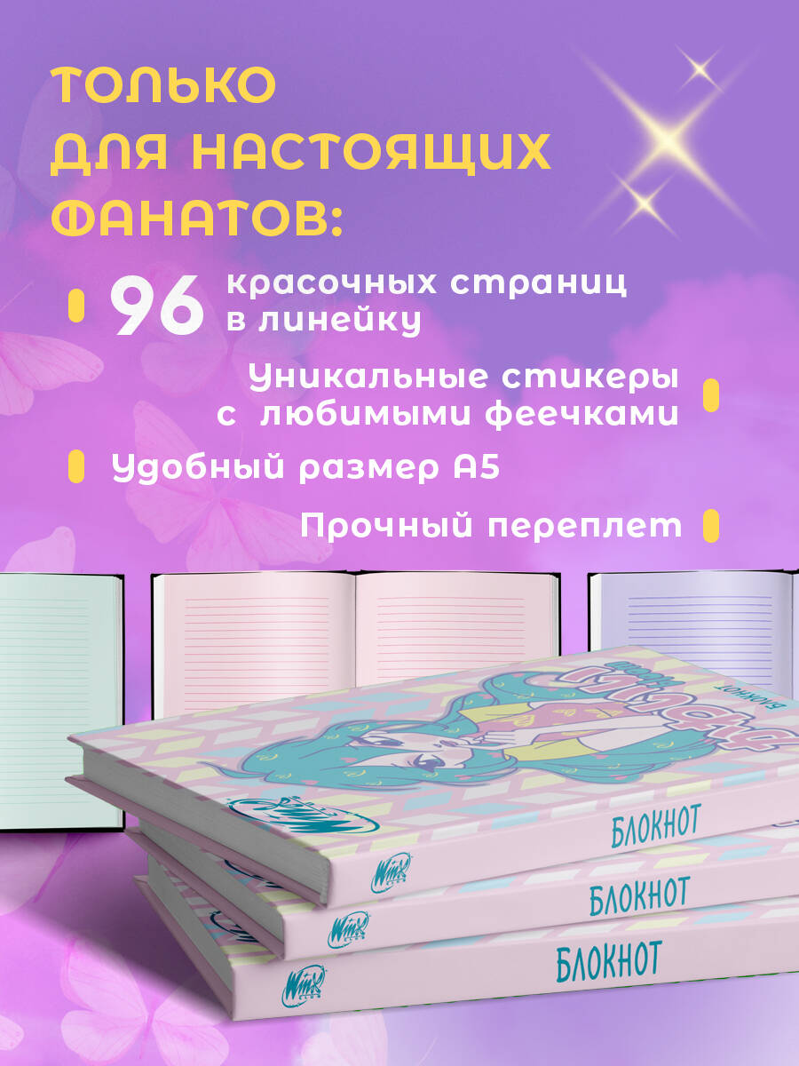Аннотация: Winx. Блокнот. Блум (А5, 48 л., цветной блок, со стикерами)