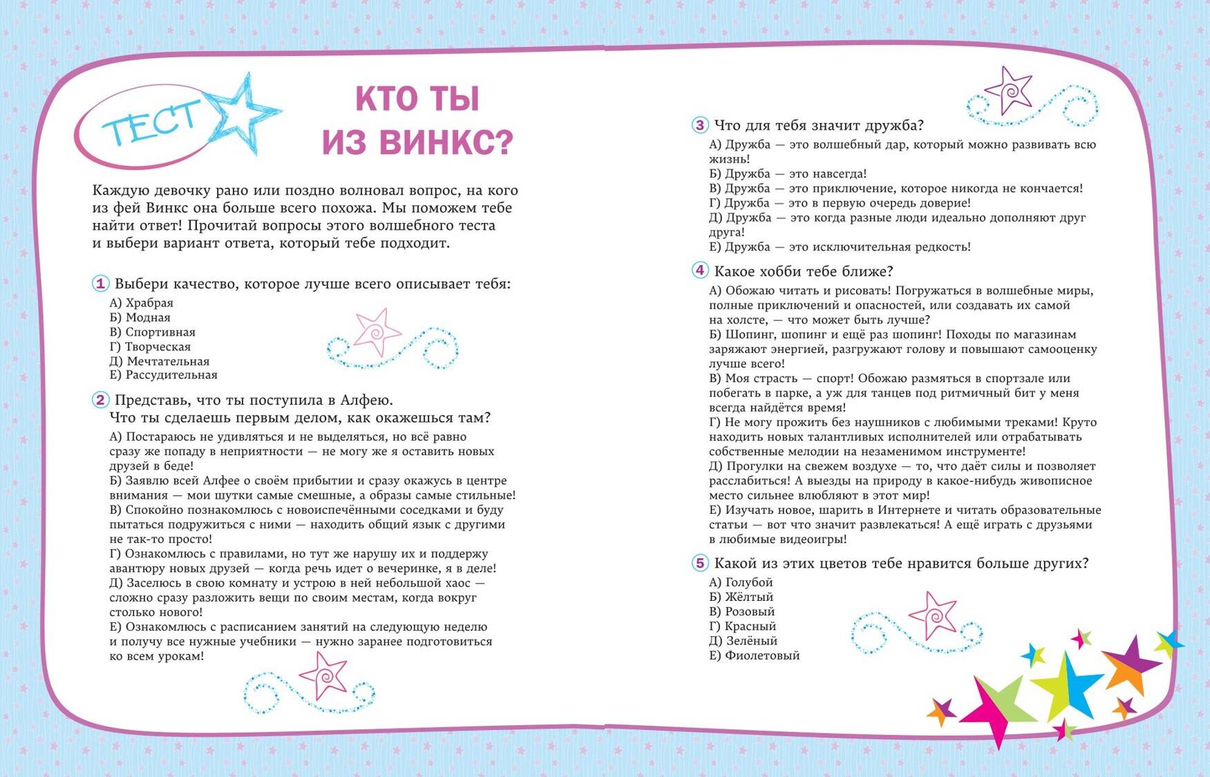 Любимые феи Винкс снова рядом! Перед тобой - волшебный и очаровательный дневник с замочком, на страницах которого оживает магия. Тебя ждут увлекательные игры, тесты, раскраски, анкеты для друзей, страницы для записей и творчества и, самое главное, любимые феи Винкс. Проверь, насколько хорошо ты помнишь истории юных волшебниц, узнай, какая магическая школа тебе подходит, составь свой плейлист, разгадай кроссворды и судоку и поделись с героинями своими самыми сокровенными тайнами. Книга будет интересна как тем, кто скучает по любимому с детства мультфильму и хочет снова окунуться в атмосферу волшебной истории, так и маленьким поклонницам мультсериала. Твори, фантазируй, играй и верь в чудеса вместе с Винкс.| Издательство | ООО "Издательство "Эксмо" |