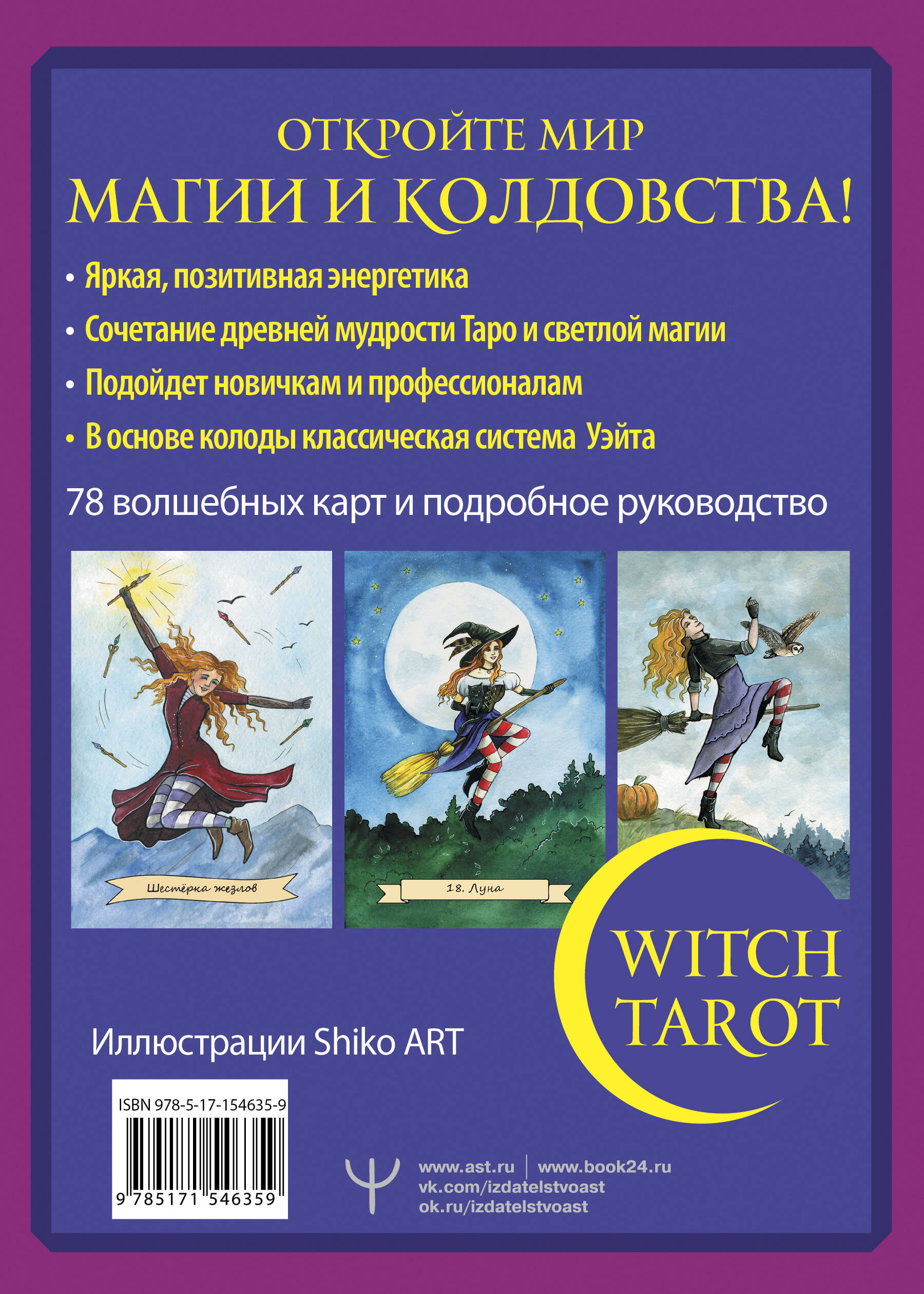 Маги, колдуны и ведьмы ничем не обнаруживают себя в повседневной жизни. Удивительно, но вместо метел и ступ они предпочитают машины и метро, вместо остроконечной шляпы носят обычные шапки и даже работают в офисах. Мир магии находится совсем рядом. Он намного ближе, чем вы думаете. Этот мир - внутри вас. Поэтому, если хотите познакомиться с современной ведьмой поближе - посмотрите в зеркало. Таро "Настоящей ведьмы" создано для всех: магов, ведьм, ведуний, колдунов, волшебников, волшебниц, профессионалов и любителей карт Таро. Как бы вы себя ни называли! Эта яркая, позитивная колода со светлой энергетикой благосклонна к каждому. С ней очень легко установить контакт. Она честно ответит на все ваши вопросы. И просит от вас только одного - быть искренним с самим собой. Тогда ваша магия будет безграничной! Колода сделана по классической системе Уэйта. Она будет понятна тем, кто уже знаком с Таро, и тем, кто только начинает обучение. Книга-инструкция просто и доступно объяснит значение карт и расскажет их историю. Комплект состоит из 78 карт и инструкции с толкованиями и раскладами, упакован в большую подарочную коробку.| Издательство | ИЗДАТЕЛЬСТВО "АСТ" |