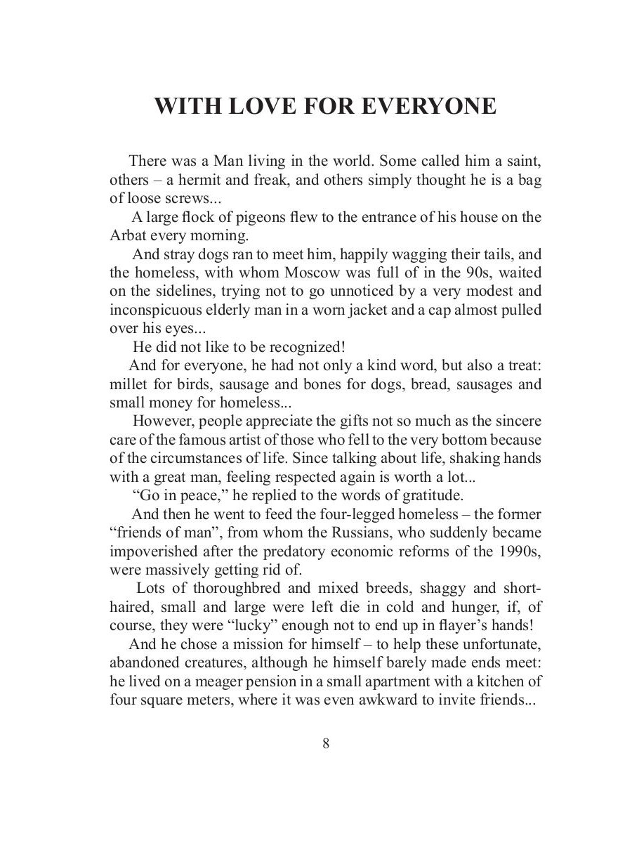 Stories filled with plaintive love for all living things. Kindness is intertwined with a unique wealth of information, and reading is not only interesting, but exciting and exemplary. Each character existed in real life. The reader gets a unique chance to get in touch with the facts, which only a few know about, and for the younger generation, such reading is a real school of nobility, an example of dedication and generosity. The one, genuine Georgy Vitsin, a school of sleuth dogs in pre-revolutionary Russia, real detective stories based on real events with historical facts. Weekdays of volunteers who give their hearts to dogs, cats, and all living things. Stories, tragic and having a happy ending. They all teach us to be human. To be a people with a capital P. I want to believe that books like this one will make the world cleaner and better, teach you to love our loved ones, in whatever guise they don't exist side by side.| Издательство | Т8 RUGRAM |