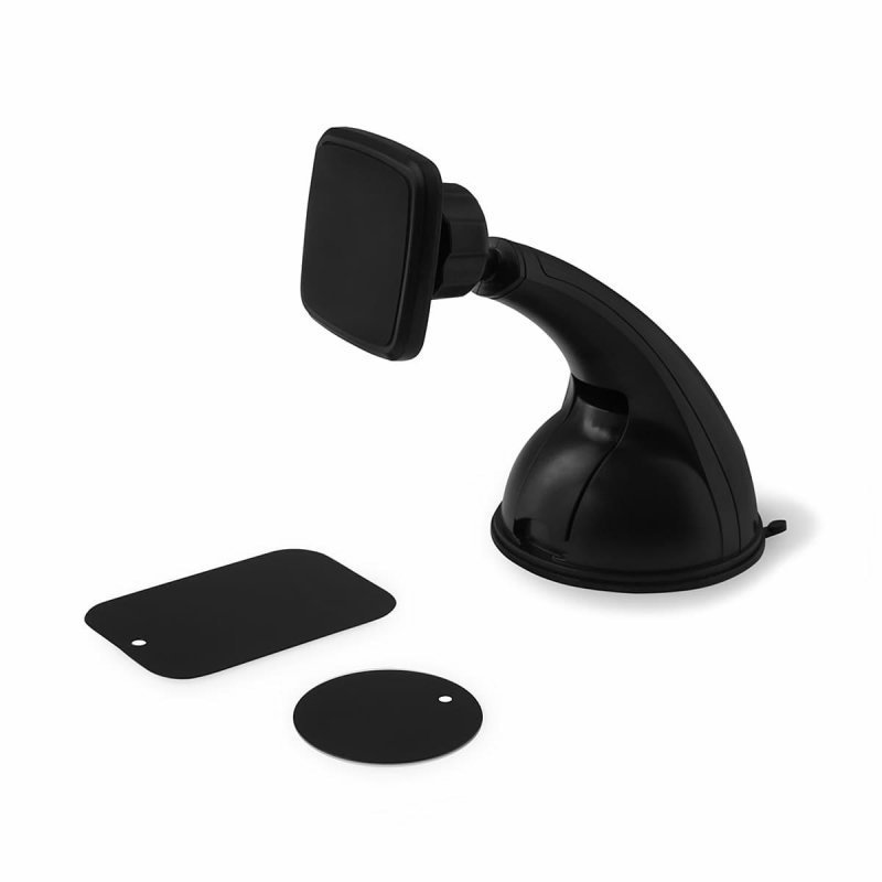 - Никаких инструментов - просто зафиксируй держатель в на лобовом стекле автомобиля и установи металлическую пластину на задней панели смартфона.