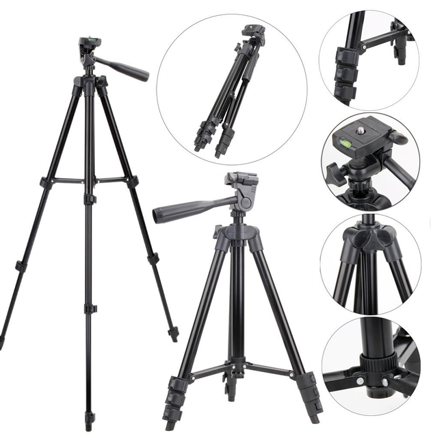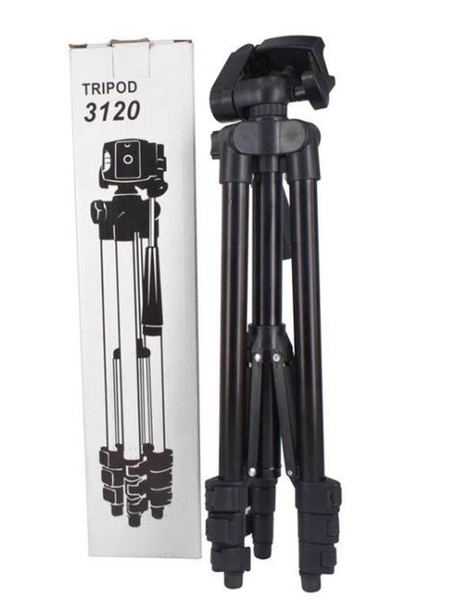 Штатив Tripod 3120 представляет собой переносной штатив для фотоаппарата и телефона. Выполнен из алюминия и имеет надёжное устойчивое положение для фиксации. Приспособление имеет три опоры (тренога), которые обеспечивают равновесие и держат камеру на определённой высоте. Телескопическая конструкция предусматривает регулировку высоты штатива - 4 секции. Максимально устанавливаемая высота штатива - 1020 мм, минимально возможная - 345 мм. За счёт такого количества секций штатив 3120 очень компактный в сложенном состоянии, длина его в сложенном виде составляет всего 350 мм. Максимальный диаметр ноги штатива - 16,8 мм. На ножках штатива предусмотрены антискользящие накладки, которые могут вращаться, а если необходимо сделать съёмки на земле, то их можно снять. Съёмная штативная головка с ручкой для вращения фотоаппарата может вращаться на 360 градусов, что пригодится для пейзажных, панорамных и других снимков. Позволит сделать точную настройку необходимого положения для съёмки.