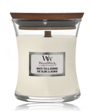 Ароматическая свеча Woodwick White Tea & Jasmine наполняет помещение свежим и утончённым ароматом белого чая с лёгкими нотками жасмина. Уникальный деревянный фитиль свечи создаёт мягкий потрескивающий звук, имитируя треск настоящего камина, усиливая ощущение уюта и гармонии.