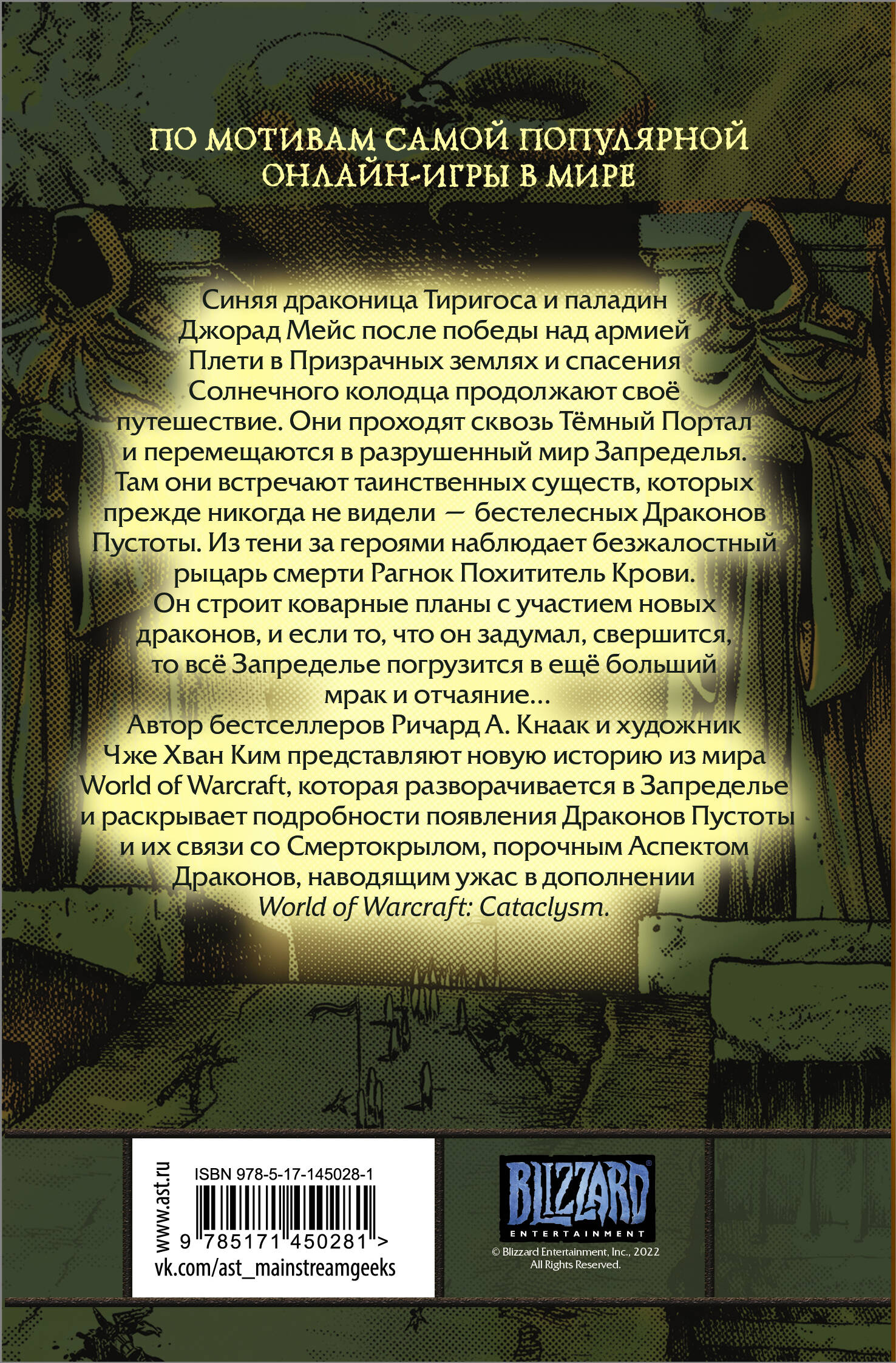 Синяя драконица Тиригоса и паладин Джорад Мейс после победы над армией Плети в Призрачных землях и спасения Солнечного колодца проходят сквозь Тёмный Портал и перемещаются в разрушенный мир Запределья. Там они встречают таинственных существ, которых прежде никогда не видели - бестелесных Драконов Пустоты. Из тени за героями наблюдает безжалостный рыцарь смерти Рагнок Похититель Крови. Он строит коварные планы с участием новых драконов, и если то, что он задумал, свершится, то всё Запределье погрузится в ещё больший мрак и отчаяние… Автор бестселлеров Ричард А. Кнаак и художник Чже Хван Ким представляют новую историю из мира World of Warcraft, которая разворачивается в Запределье и раскрывает подробности появления Драконов Пустоты и их связи со Смертокрылом, порочным Аспектом Драконов, наводящим ужас в дополнении World of Warcraft: Cataclysm.