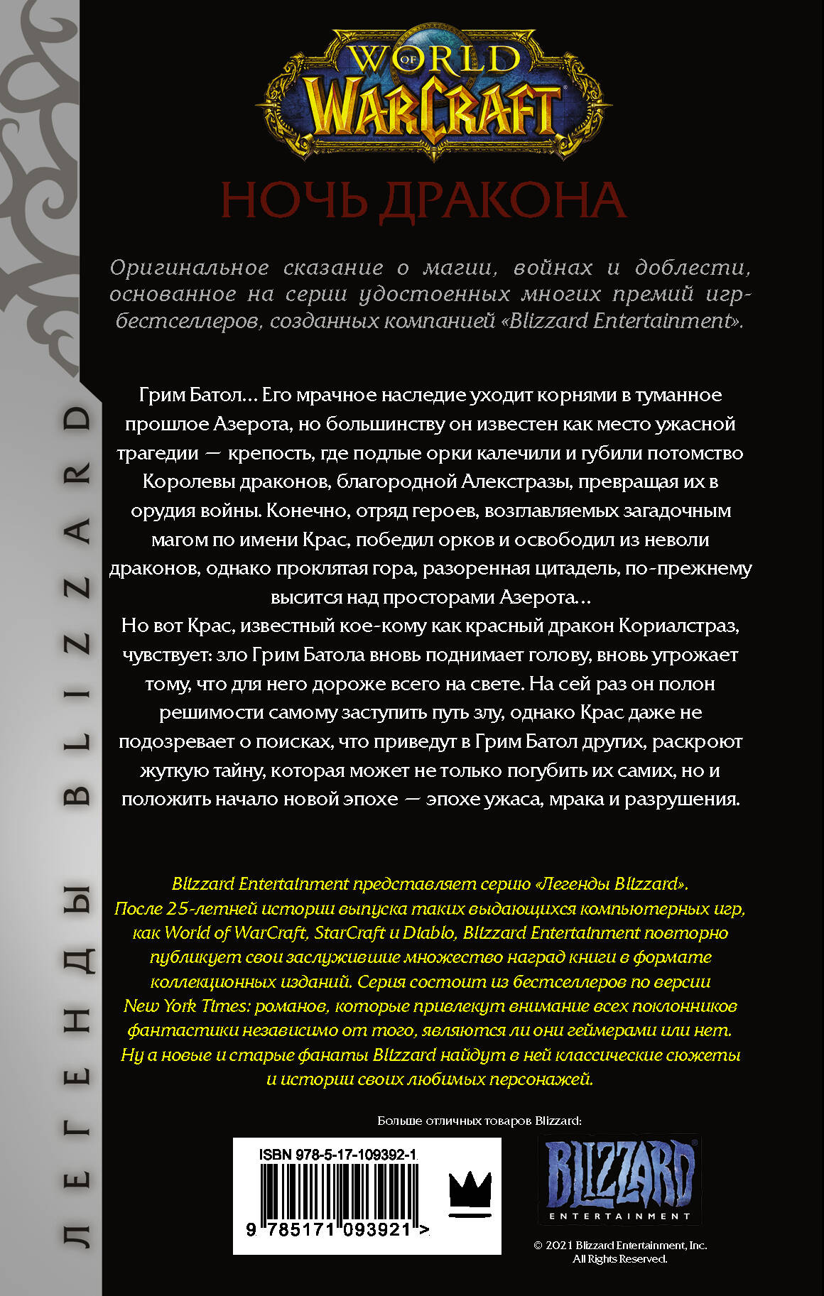 Оригинальное сказание о магии, войнах и доблести, основанное на серии удостоенных многих премий игр-бестселлеров, созданных компанией «Blizzard Entertainment». Грим Батол - его темная история скрыта далеко в прошлом Азерота. Многие знают его как место, где разыгралась ужасная трагедия - мерзкие орки подчинили себе детенышей благородной королевы Драконов Алекстразы и использовали их в войне с людьми. И хотя отряду героев во главе с загадочным магом Красом удалось одолеть орков и освободить плененных драконов, проклятье горы никуда не делось... И вот Крас - также известный некоторым как красный дракон Кориалстраз - почувствовал, что в Грим Батоле вновь пробудилось зло, угрожающее всем, кто ему дорог. Твердо решив на сей раз противостоять этой напасти в одиночку, он и не подозревает, что судьба влечет к Грим Батолу не только его одного, и что скрытая там чудовищная правда может не только погубить всякого туда вошедшего, но и возвестить начало новой эры тьмы и разрушения.| Издательство | АСТ |