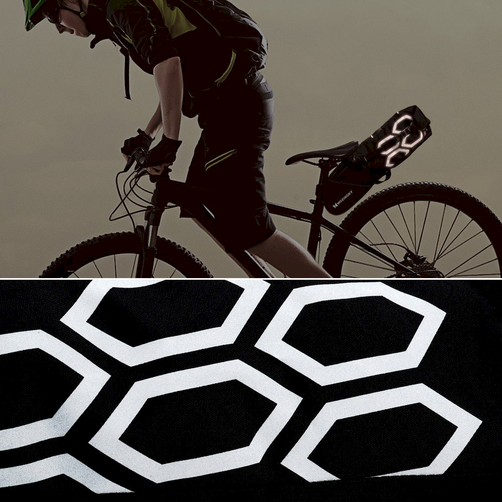 Material with high frequency welding technology, plus crimp sealing design, so that the bag has full waterproof performance. The tail anti-cursor increases the safety of cycling at night. The large-capacity tail package design replaces the traditional fender.