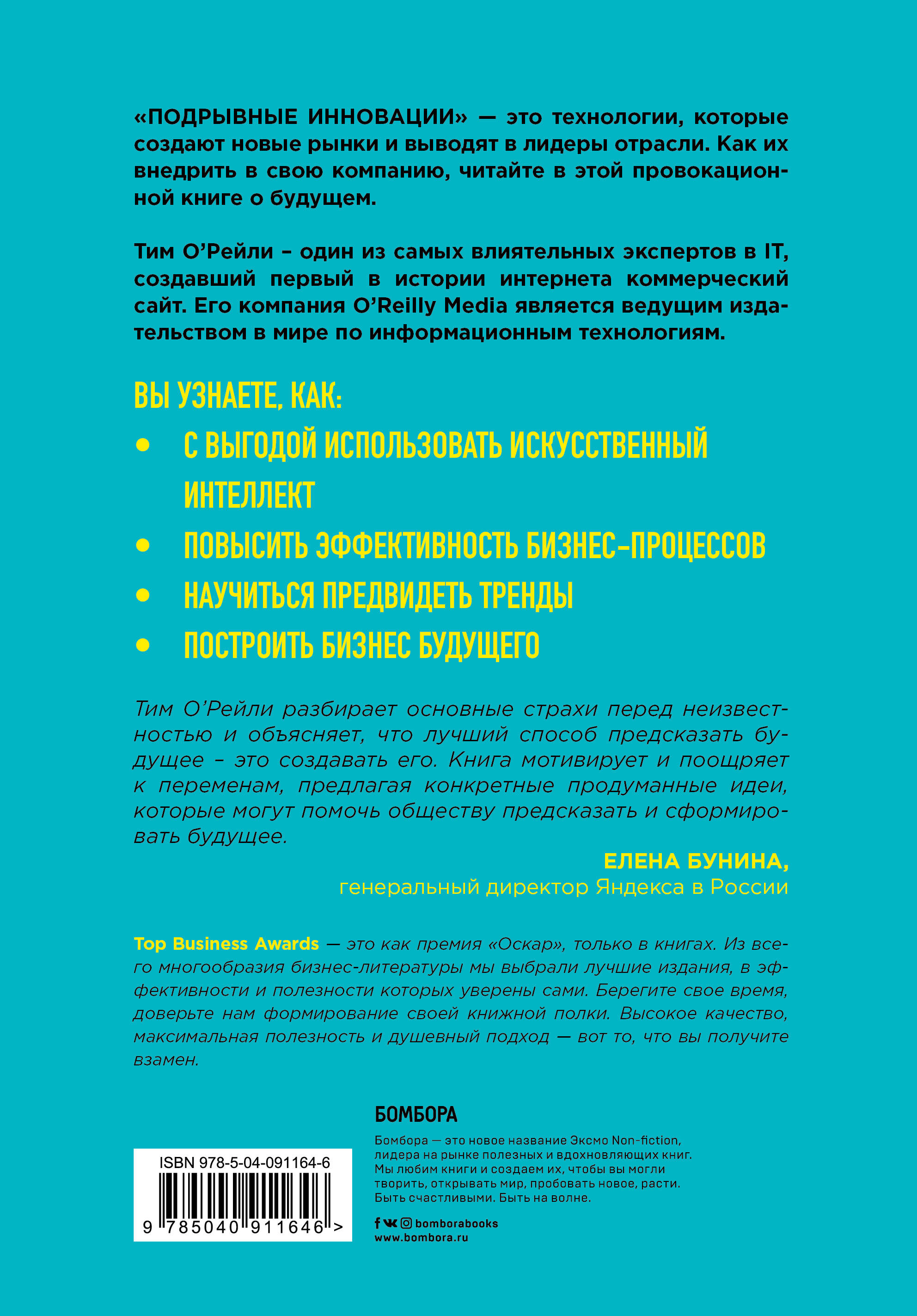 Провокационная книга о будущем и технологиях! Уже завтра можно потерять все, если не внедрить искусственный интеллект в свою работу. Вы узнаете, как с помощью новых технологий повысить эффективность бизнес-процессов, увеличить производительность труда и развивать компанию без привлечения инвестиций со стороны. Тим О'Рейли делится бизнес-моделью будущего, которая поможет выстоять в конкурентной борьбе и даже стать главным игроком в отрасли. Вы найдете прорывные инструменты от Amazon, Google, Uber, Apple, Facebook| Издательство | ООО "Издательство "Эксмо" |