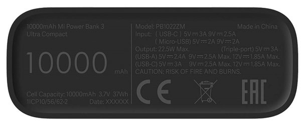 Корпус Mi Power Bank 3 Ultra Compact выполнен из самых качественных безопасных материалов - поликарбоната и АБС-пластика . Он устойчив к царапинам, истиранию, выцветанию, имеет простую, но функциональную и приятную на ощупь фактуру поверхности. Это обеспечивает удобный хват и предотвращает скольжение устройства на гладких поверхностях.