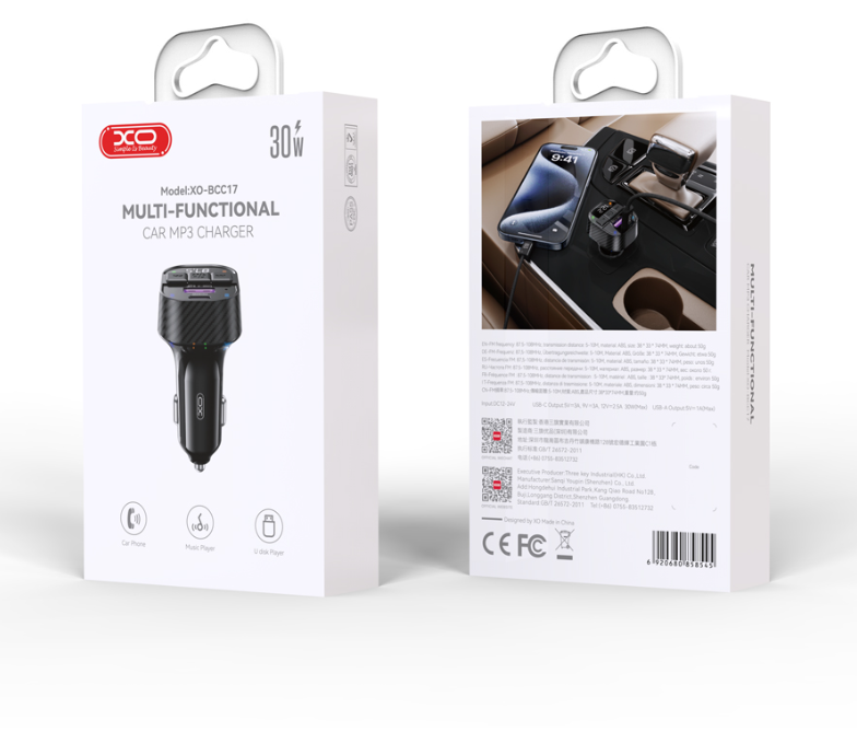 XO BCC17 FM-передатчик Bluetooth MP3 Aвтомобильное зарядное устройство 30W