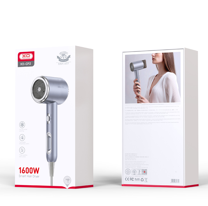 XO CF2 - это фен для волос с ионизацией. Функция горячего и холодного обдува поможет позаботиться о состоянии волос. Более теплый поток воздуха будет полезен всякий раз, когда вы захотите быстро и эффективно высушить их. Окончание сушки холодной струей воздуха сделает нашу прическу гладкой, блестящей и лучше зафиксирует. Это также положительно влияет на структуру волос.