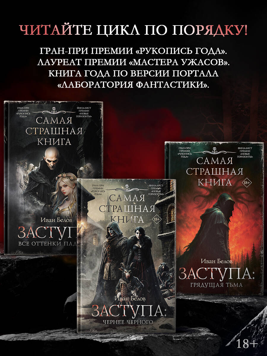 - Роман серии «Самая страшная книга» «Заступа: Грядущая тьма» продолжает культовый цикл, в котором тёмное славянское фэнтези переплетается с хоррором и черным юмором. - В окрестностях тихого Вышнего Волочка начинается нечто странное и страшное: ритуалы, отравленные колодцы, бунт нечисти и надвигающаяся тьма, с которой Руху Бучиле и Лесной страже придется столкнуться лицом к лицу. - Для поклонников культового цикла Анджея Сапковского «Ведьмак» и мрачного славянского фэнтези. - Цикл «Заступа» уже отмечен наградами: первая книга «Все оттенки падали» получила Гран-при «Рукописи года», победила в премии «Мастера ужасов» и стала Книгой года по версии «Лаборатории фантастики».| Издательство | Издательство "АСТ" |
