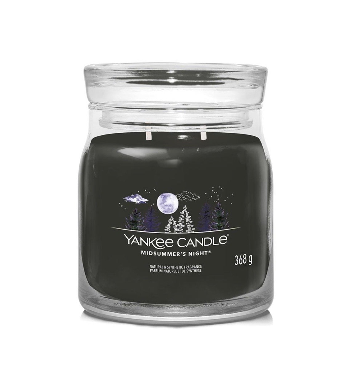 Yankee Candle Midsummer's Night - ароматическая свеча средних размеров в стеклянной банке от культового бренда Yankee Candle, с насыщенным глубоким ароматом «Летняя ночь», объём 368 г, стильная черная банка создаёт уют и атмосферу интриги в интерьере, время горения до 60-90 часов для длительных вечеров дома.