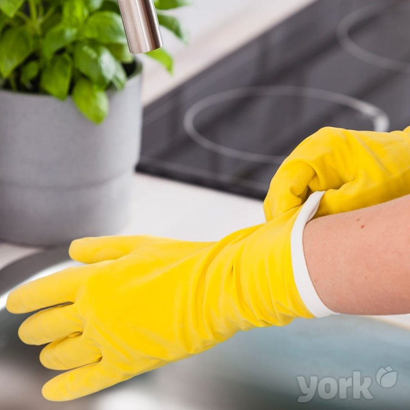 York Хозяйственные латексные перчатки размер S (1 пара) - практичные защитные перчатки из натурального латекса для домашних работ, уборки, мытья посуды или садовых задач. Обеспечивают защиту рук от влаги, грязи и бытовых моющих средств, имеют текстурированную поверхность для лучшего захвата и внутреннюю подкладку для удобства надевания и снятия.