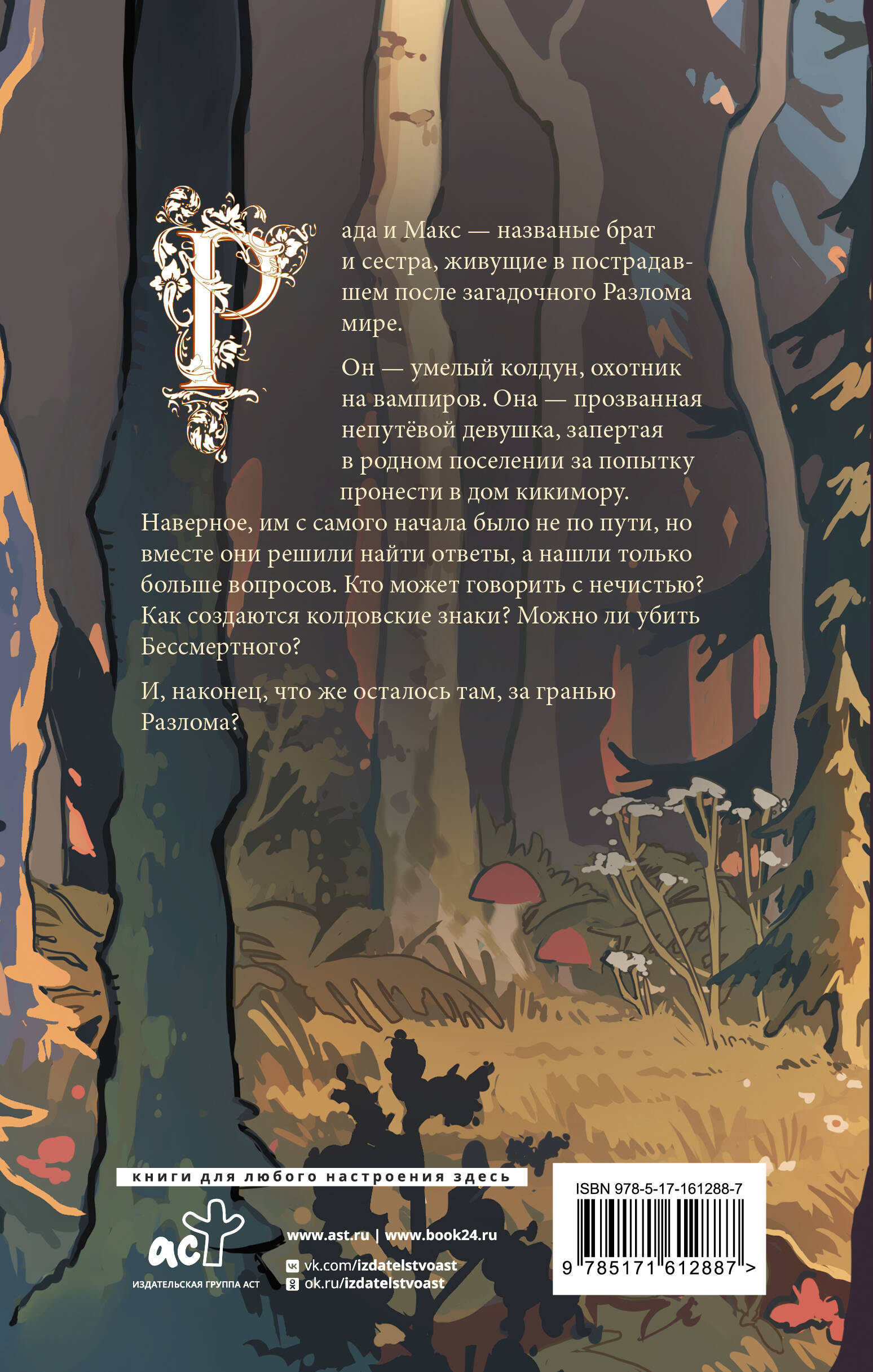 Хит «Фикбука», ставший книгой! Постапокалипсис с настроением страшных русских сказок, населенный колдунами, упырями и нечистью. История о мире, изменившемся после загадочного Разлома. Теперь колдовство - не просто полезное умение, а способ коммуникации - и залог выживания. Для всех, кто следит за славянским фэнтези и обожает русский фольклор, особенно дремучего и мрачного толка. Рада и Макс - брат и сестра: не кровью, но душой. Они остались одни в мире, прошедшем через Разлом. Макс - охотник на вампиров и колдун. Мира - девушка, из-за любопытства ухитрившаяся настроить против себя целую деревню. Им не по пути, но они вместе, потому что их волнуют одни и те же вопросы. Как рисовать колдовские знаки? Может ли Бессмертный умереть? Как отличить сон от яви в мире, где все перемешалось? И как узнать, что же все-таки стало причиной Разлома?| Издательство | Издательство "АСТ" |