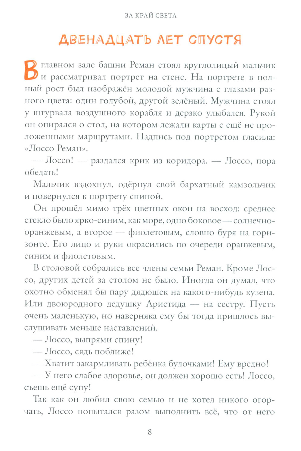 Двенадцатилетний Лоссо Реман единственный из своей семьи путешественников никогда и нигде не бывал. Взрослые считают его ещё слишком маленьким, а в мире так много опасностей! Из книг и карт, которыми Реманы снабжают свой город, Лоссо знает, что мир огромен и интересен, и ему так хочется скорее его увидеть хоть краешком глаза... А ещё Лоссо обожает рассказы о своём знаменитом дяде, тоже Лоссо Ремане - отчаянном путешественнике, который исчез в год рождения мальчика. Случайная находка гостя семьи возрождает надежду на то, что дядя жив и, конечно, нуждается в помощи племянника! Так начинается путешествие юного Лоссо за край света...| Издательство | Абрикобукс |
