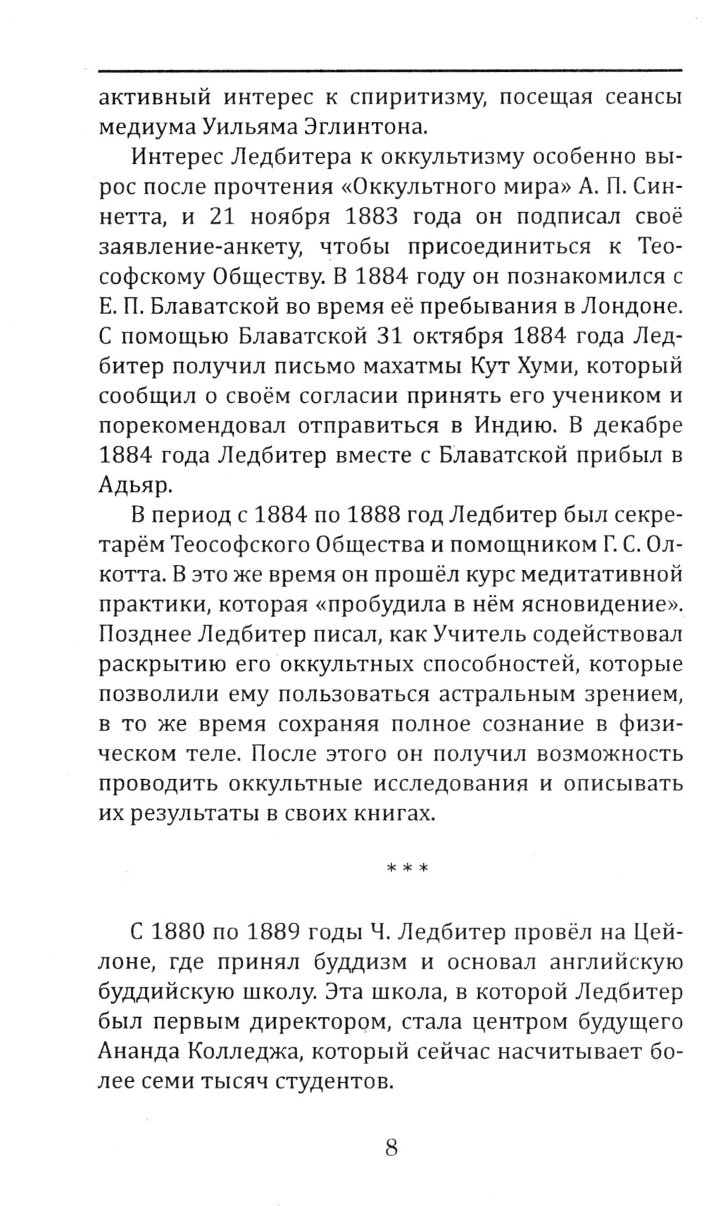 В данный сборник включены работы, написанные известными теософами - Анни Безант (1847-1933) и Чарльзом Ледбитером (1854-1934): 1) А. Безант «Аватары» (четыре лекции, прочитанные на встрече по случаю 24-й годовщины Теософического общества в Адьяре, Мадрас, 1899); 2) Ч. Ледбитер «Невидимые помощники» (1896, первый перевод на русский язык - 1909, полная версия - 1928). В четырёх лекциях Анни Безант подробно рассказывает о том, кто такие аватары и зачем они приходят на Землю. А Чарльз Ледбитер даёт простые и понятные ответы на такие вопросы, как: «Кто помогает нам, когда мы в беде? Чья невидимая рука подаёт нам помощь? Кто утешает нас в несчастье и открывает глаза на истину?» Настоящее издание предназначено для тех, кто идёт путём духовного развития, и кто хочет в простой и понятной форме ознакомиться с основами сокровенных знаний.