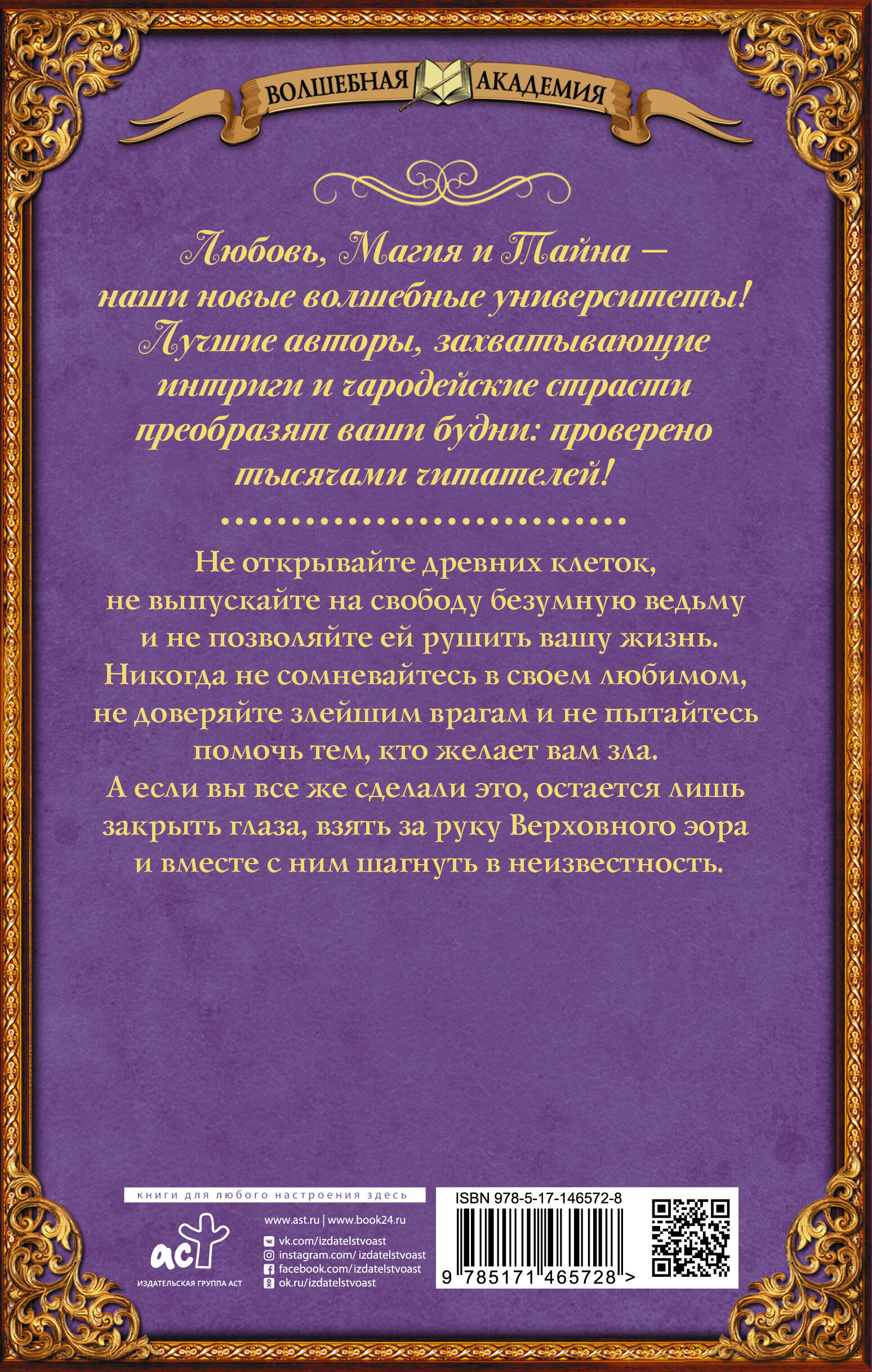 Не открывайте древних клеток, не выпускайте на свободу безумную ведьму и не позволяйте ей рушить вашу жизнь. Никогда не сомневайтесь в своем любимом, не доверяйте злейшим врагам и не пытайтесь помочь тем, кто желает вам зла. А если вы все же сделали это, остается лишь закрыть глаза, взять за руку Верховного эора и вместе с ним шагнуть в неизвестность.| Издательство | АСТ |