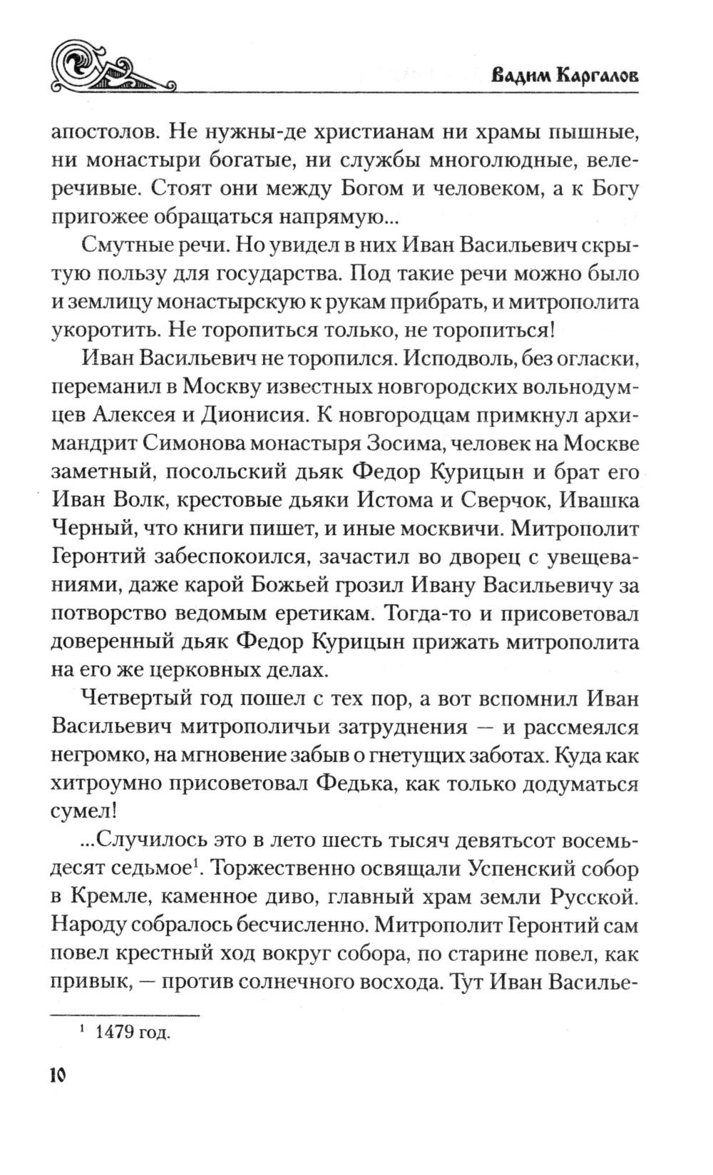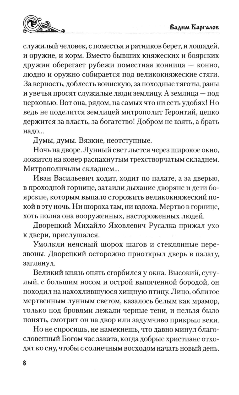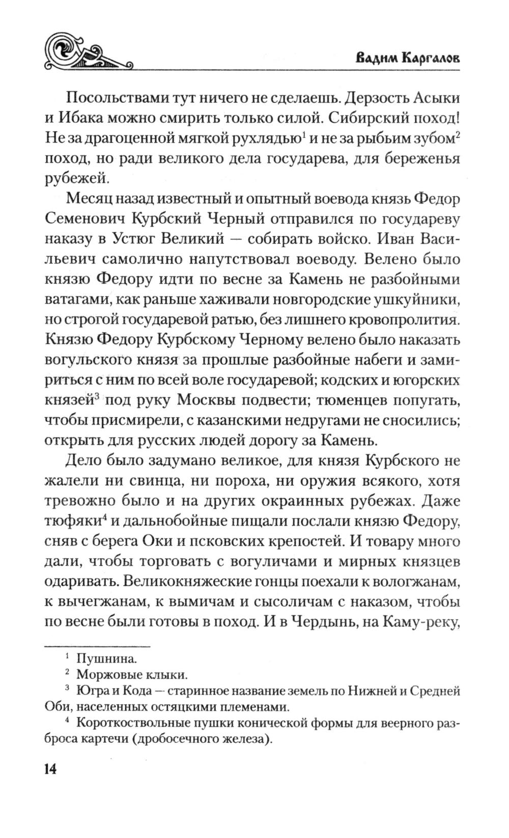 Знаменитый поход Ермака стал лишь завершением продвижения России в Сибирь, но началось оно раньше. В 1483 году по приказу великого государя Ивана III опытный воевода, князь Федор Курбский Черный, отправился во главе большой рати за каменные горы, как тогда называли Уральский хребет. А с князем - помощник, тоже опытный воевода, Иван Салтык Травин. Двум воеводам великого государя надо вместе прокладывать путь в Сибирь, хоть и не по нраву гордому князю Курбскому, что под ногами будет путаться безродный Иван Салтык со своими «людишками», такими же безродными. Может, сплотит их поход против вогульского князя Асыки? Или война с тюменским ханом Ибаком? Таков сюжет произведения, созданного известным писателем-историком Вадимом Каргаловым.| Издательство | Вече |