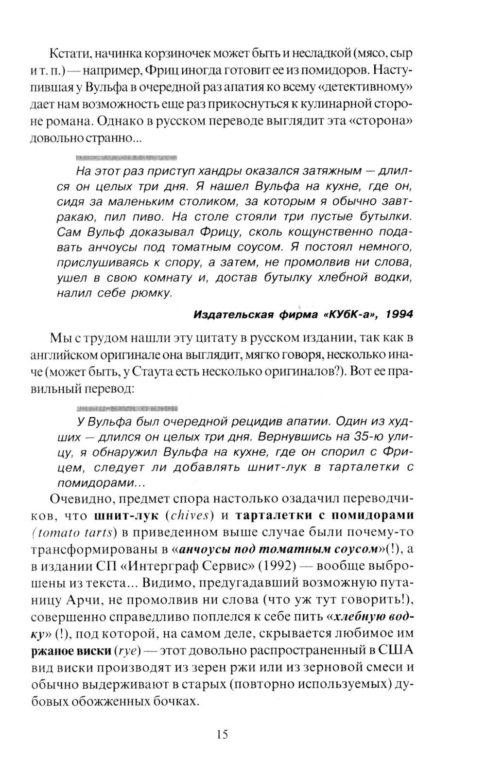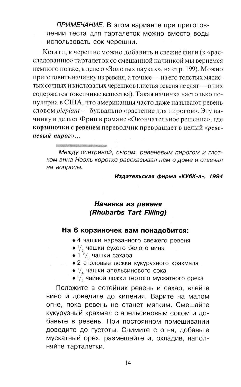 Занимательное, поучительное и живое пособие по интернациональной кулинарии, в котором приведены рецепты блюд, взятых из любимых в нашей стране историй о Ниро Вульфе, непревзойденном сыщике и величайшем чревоугоднике. Вы убедитесь, что они не так сложны по составу ингредиентов и технологии приготовления, как их интригующе-загадочные названия. Так что попробуйте и вы приобщиться к кулинарным тайнам повара Фрица Бреннера и разнообразьте ваше меню новыми блюдами, которые обязательно заинтересуют тех, кто любит готовить и вкусно поесть. Вы убедитесь, что подзаголовок «Кулинарный детектив» - не лукавая авторская уловка, он обоснован. Поиск и аналитические сопоставления разных вариантов переводов текстов Рекса Стаута, обращения к иным источникам информации по затронутой теме весьма схожи с методами криминалистов при расследованиях. Блистательное трио авторов из прекрасного переводчика Татьяны Соломоник, знатока школ мировой кулинарии Сергея Синельникова и известного петербургского шеф-повара высочайшей квалификации Ильи Лазерсона сделали эту книгу поистине уникальной.| Издательство | Центрполиграф |