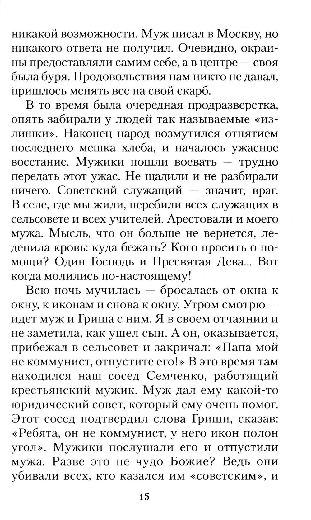Нет книги интереснее, чем человеческая жизнь. О судьбе целой семьи - малой церкви, которая хранила Православие в огненных испытаниях двадцатого столетия, расскажет вам эта документальная повесть. Не много осталось живых свидетельств о том страшном времени, и каждое из них - бесценно, ведь они удостоверяют, что вера в Бога и доверие Божественному Промыслу даже в самых страшных обстоятельствах приводят человека к обретению непоколебимого мира и радости в сердце - залога той вечной радости, которой никто не отнимет у нас (Ин. 16,22).| Издательство | Отчий дом |