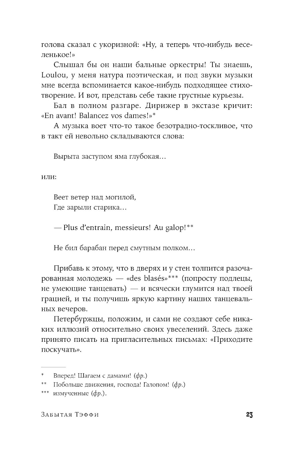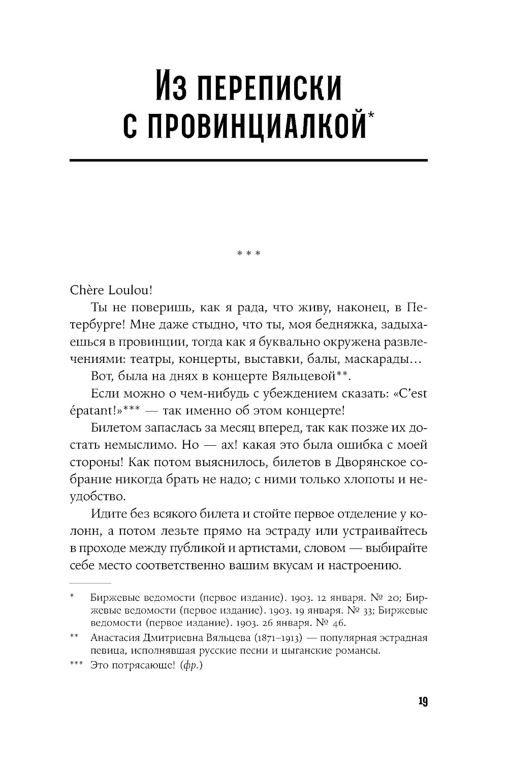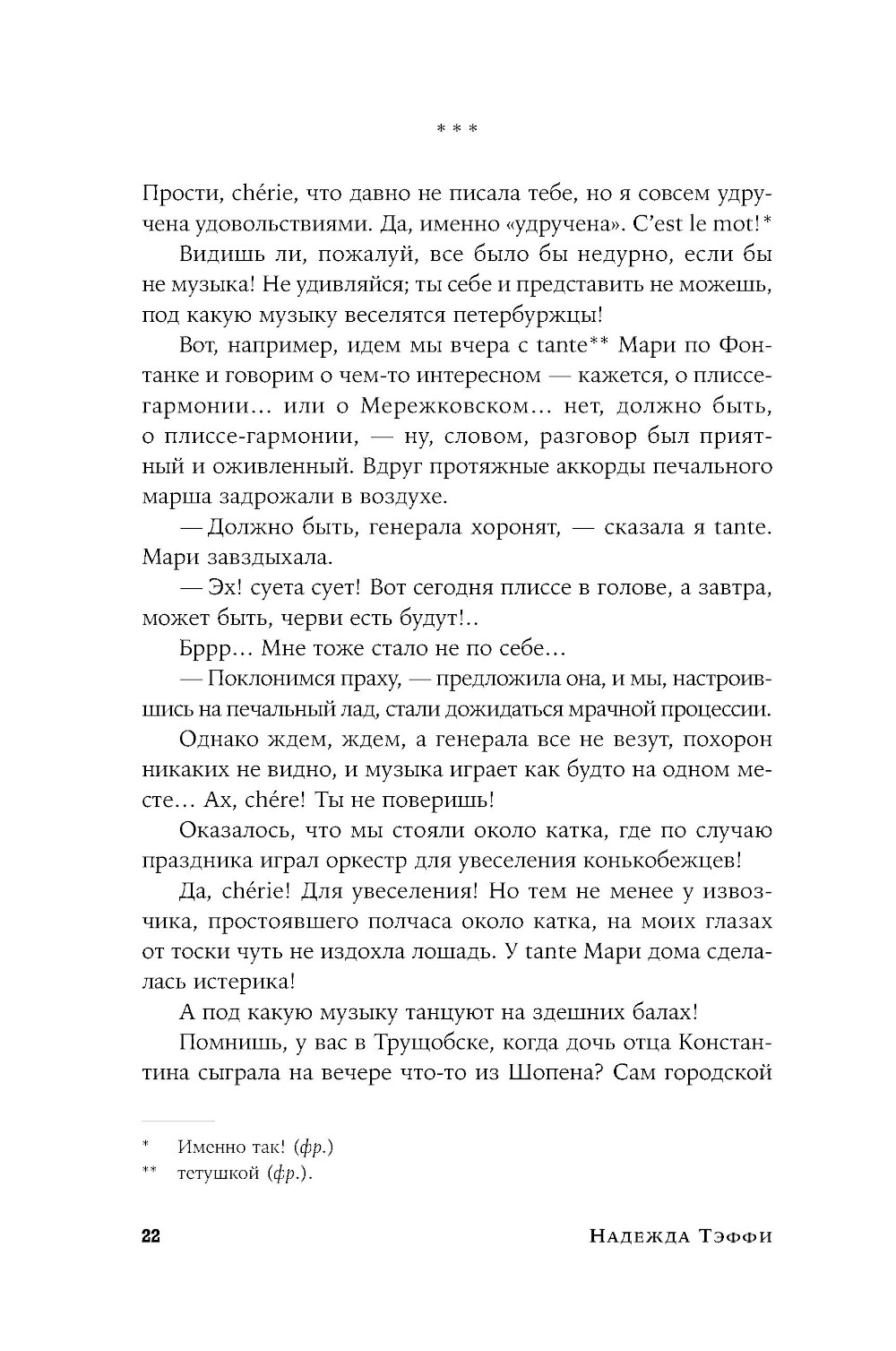 Изящные, ироничные, а порой и ехидные рассказы Надежды Лохвицкой, более 100 лет назад прославившейся как Тэффи, регулярно переиздаются с 1990-х годов. Но в основном это ранняя юмористическая или лиричная эмигрантская проза. Тем временем ее дореволюционные фельетоны долго оставались в тени. И вот наконец они впервые публикуются под одной обложкой. Эти блестяще написанные, полные тонких наблюдений и точных оценок заметки о российской повседневности образца начала ХХ века удивительным образом перекликаются с современностью - столько общего у нас с героями Тэффи, таким живым и пластичным языком написаны ее истории.| Издательство | Альпина нон-фикшн |