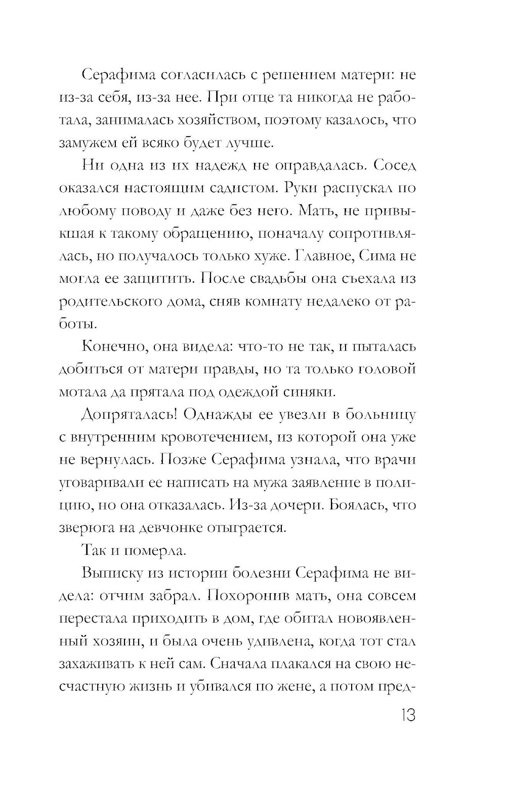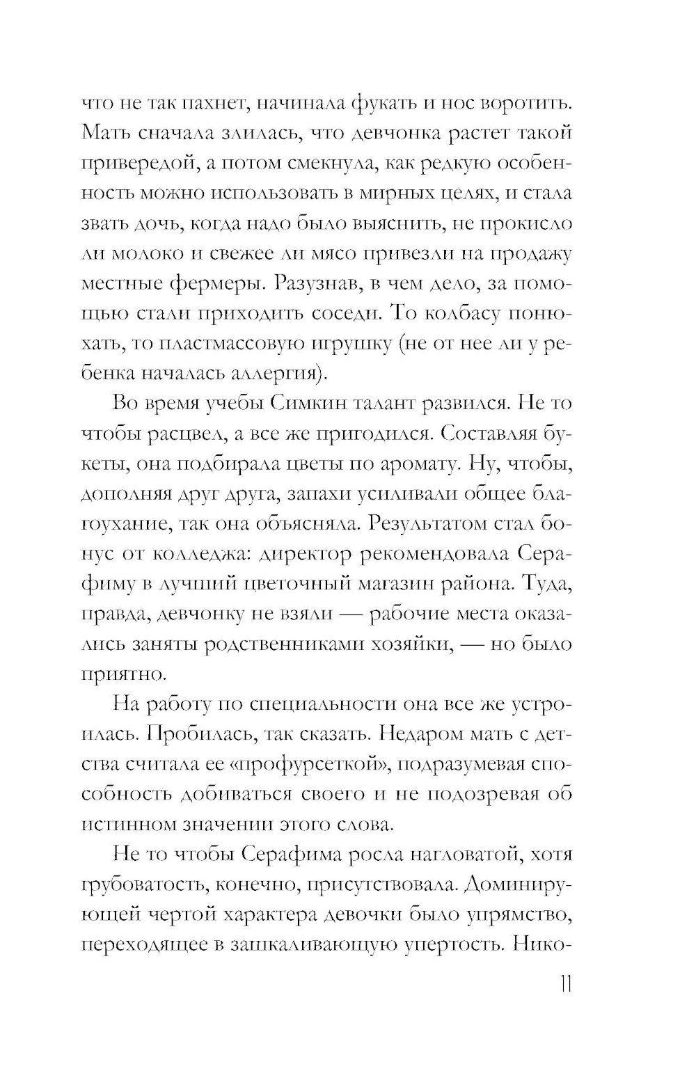 Серафиме Сидоровой не очень везет в жизни: она потеряла и родителей, и родной дом. Единственное, что никто не может у нее отнять, - способность различать запахи. Именно этот дар в конце концов помогает Серафиме найти пристанище и стать ученицей настоящего парфюмера. Знаменитый Константин Береговский открывает перед ней дверь в волшебный мир ароматов, где Серафима сможет отточить свой редкий талант. Девушка боготворит учителя. Вот только тот ли он, за кого себя выдает? Или в его шкафу спрятаны страшные тайны, которые однажды станут угрозой и для нее самой?| Издательство | Эксмо |