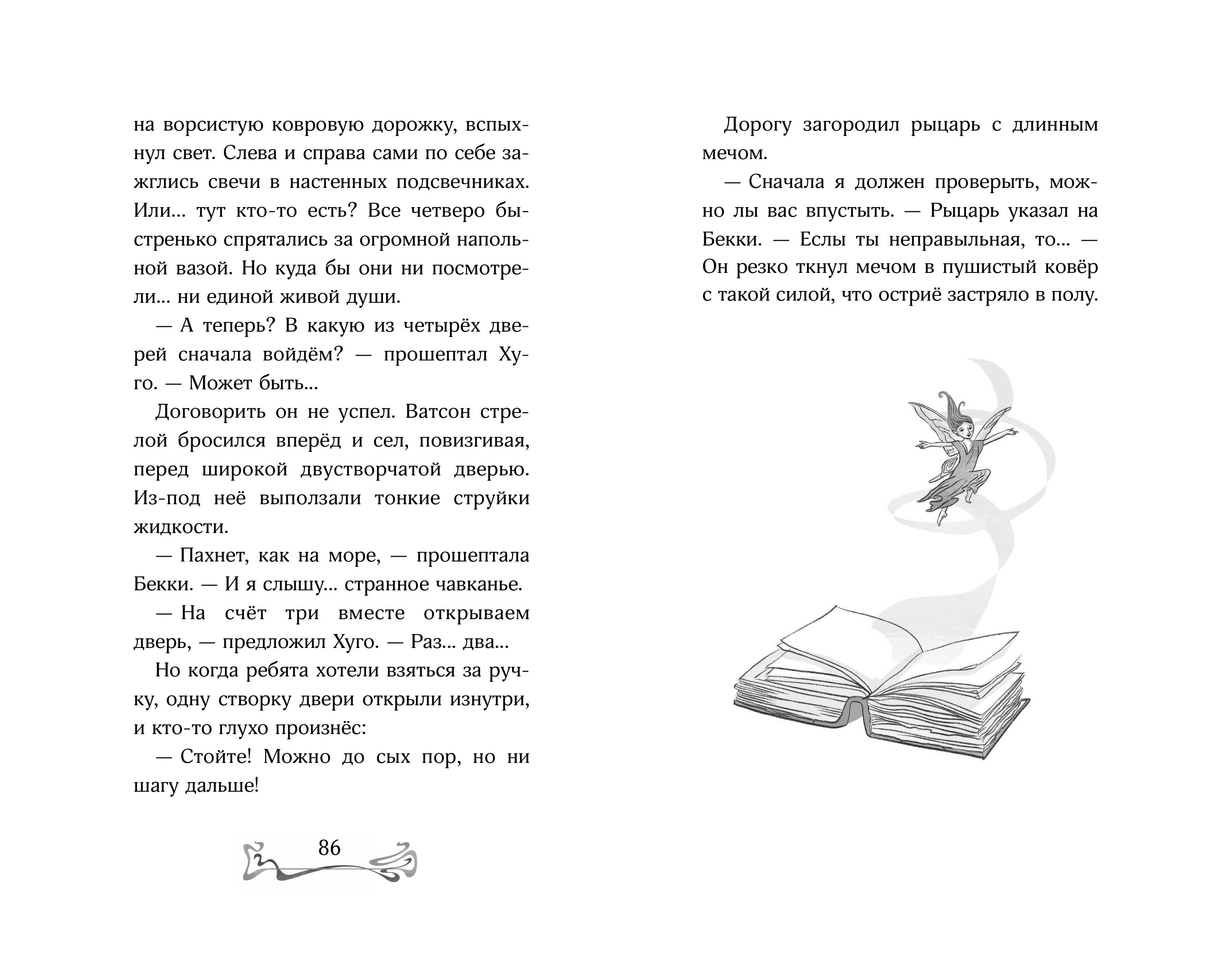 Вот это чудеса! Замок Розенбольт, куда переехала Бекки, просто огромный! Уютные гостиные с каминами, бесчисленные коридоры с портретами графинь на стенах и старинными доспехами… Бекки не терпится осмотреть каждый уголочек! Вот только все лестницы, которые ведут наверх, обрываются… посередине. Получится ли у девочки найти путь к таинственным комнатам? И что за загадки скрываются за их дверями? Удивительная и очень атмосферная история о книгах и магии! Волшебные истории о девочке Бекки уже полюбили более 30 тыс. детей! Идеально для первого самостоятельного чтения: грамотный баланс между текстом и иллюстрациями. Крупный шрифт, небольшие главы и простой сюжет - читать будет удобно и интересно.| Издательство | ООО "Издательство "Эксмо" |