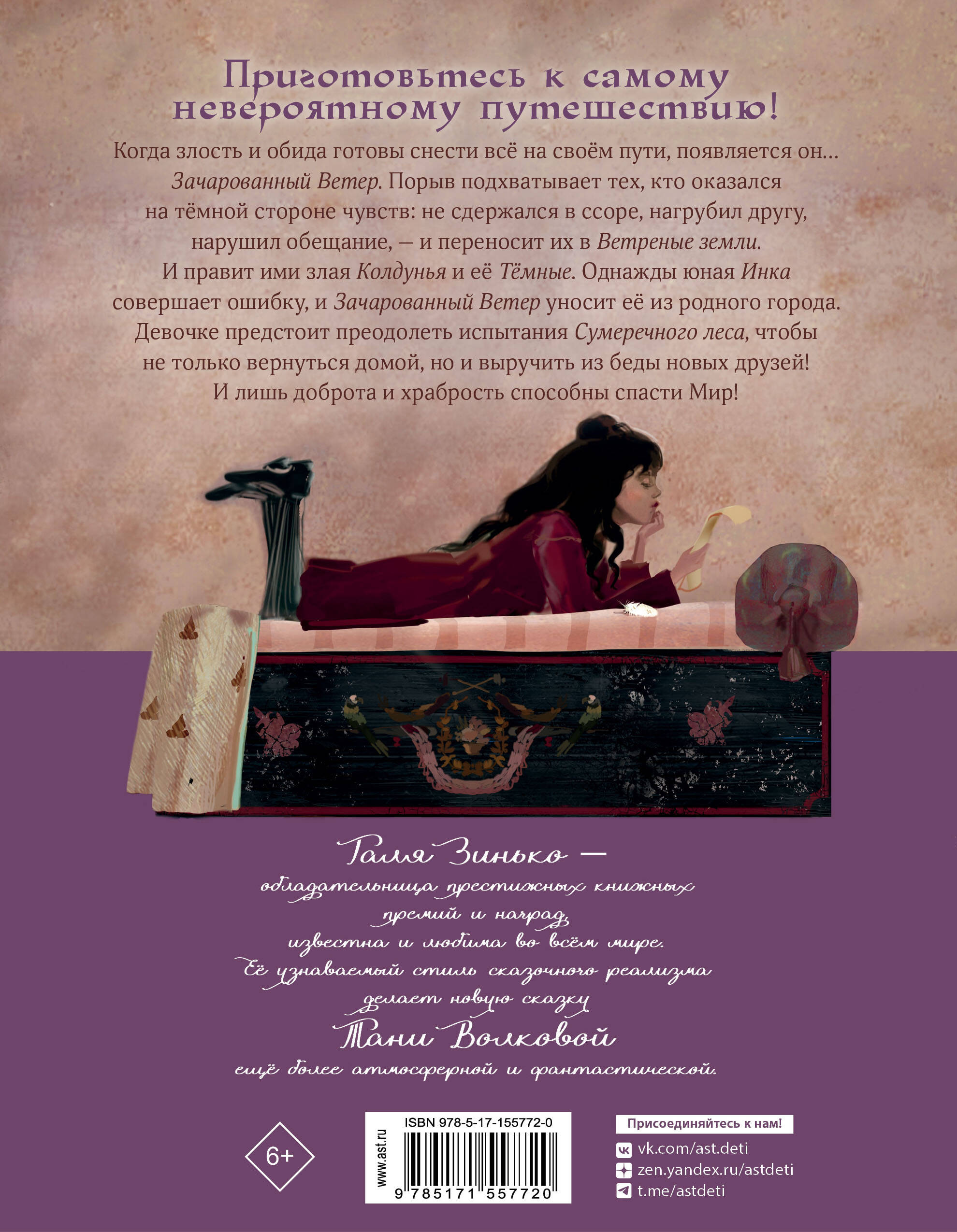 Приготовьтесь к самому невероятному путешествию! Когда злость и обида готовы снести всё на своём пути, появляется он… Зачарованный Ветер. Порыв подхватывает тех, кто оказался на тёмной стороне чувств: не сдержался в ссоре, нагрубил другу, нарушил обещание, - и переносит их в Ветреные земли. И правит ими злая Колдунья и её Тёмные. Однажды юная Инка совершает ошибку, и Зачарованный Ветер уносит её из родного города. Девочке предстоит преодолеть испытания Сумеречного леса, чтобы не только вернуться домой, но и выручить из беды новых друзей! И лишь доброта и храбрость способны спасти Мир! Галя Зинько - обладательница престижных книжных премий и наград, известна и любима во всём мире. Её узнаваемый стиль сказочного реализма делает новую сказку Тани Волковой ещё более атмосферной и фантастической.| Издательство | Издательство "АСТ" |