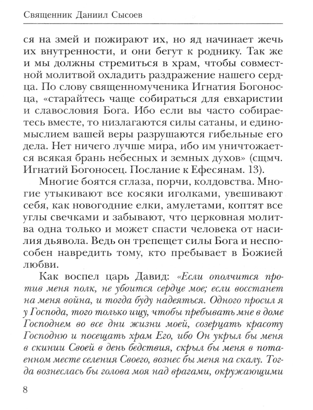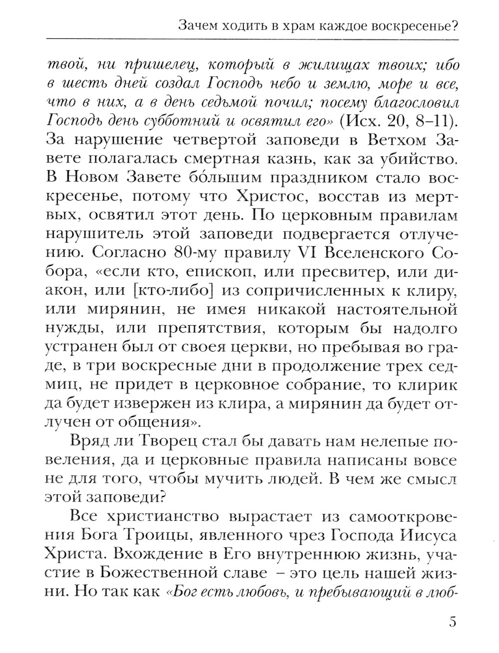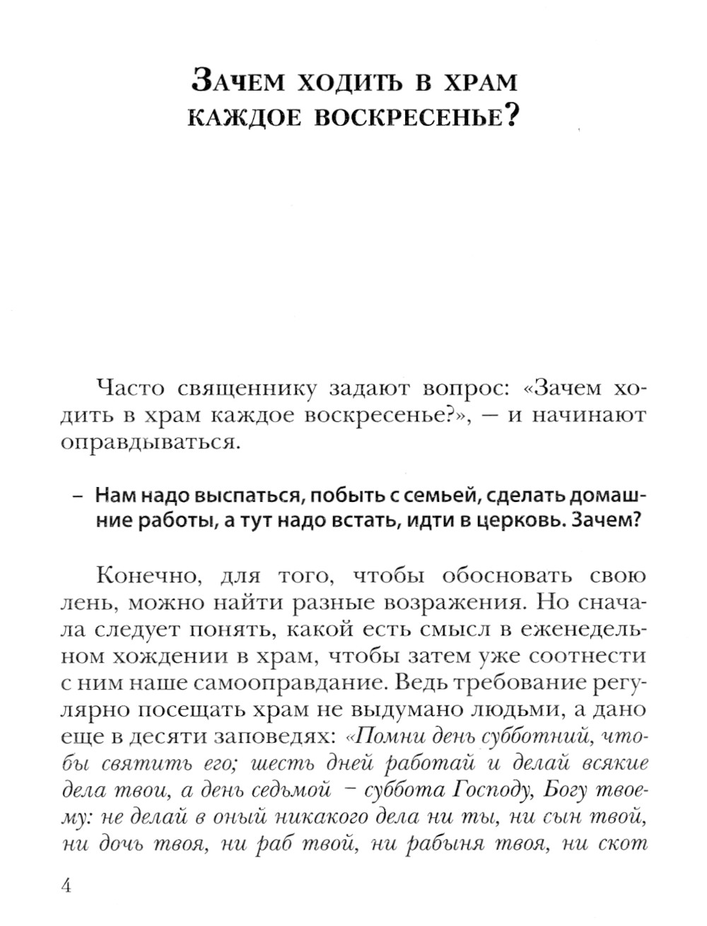 В наше время многие крещеные в Православной Церкви люди забыли, во имя Кого над ними совершалось Таинство и перед Кем придется держать ответ. Обязательное, по заповеди Господа, посвящение одного дня в неделю Тому, Кто нас сотворил и продолжает питать и оберегать, не такая уж и большая жертва, тем более, что это нужно не Богу, а человеку. Душа задыхается без Господа, а, участвуя в богослужениях и питаясь Его благодатью, расцветает вновь и преображается, вырываясь из-под гнета суеты, ведущей в тупик. Суета твердит, что много работы, а в выходные нужно с детьми побыть, домашние дела поделать или развлечься с друзьями. Но какой смысл гнаться за количеством мертвых дел? Данная брошюра поможет найти ответ на ряд возражений, связанных с нежеланием исполнять 4-ю заповедь, ответит на вопросы, почему невозможно вне Церкви в полноте молиться Богу, о важности Таинств и самой сердцевине Христианства - Таинстве святого Причащения.| Издательство | Благ.фонд "Мисс. центр им.иерея Даниила Сысоева" |