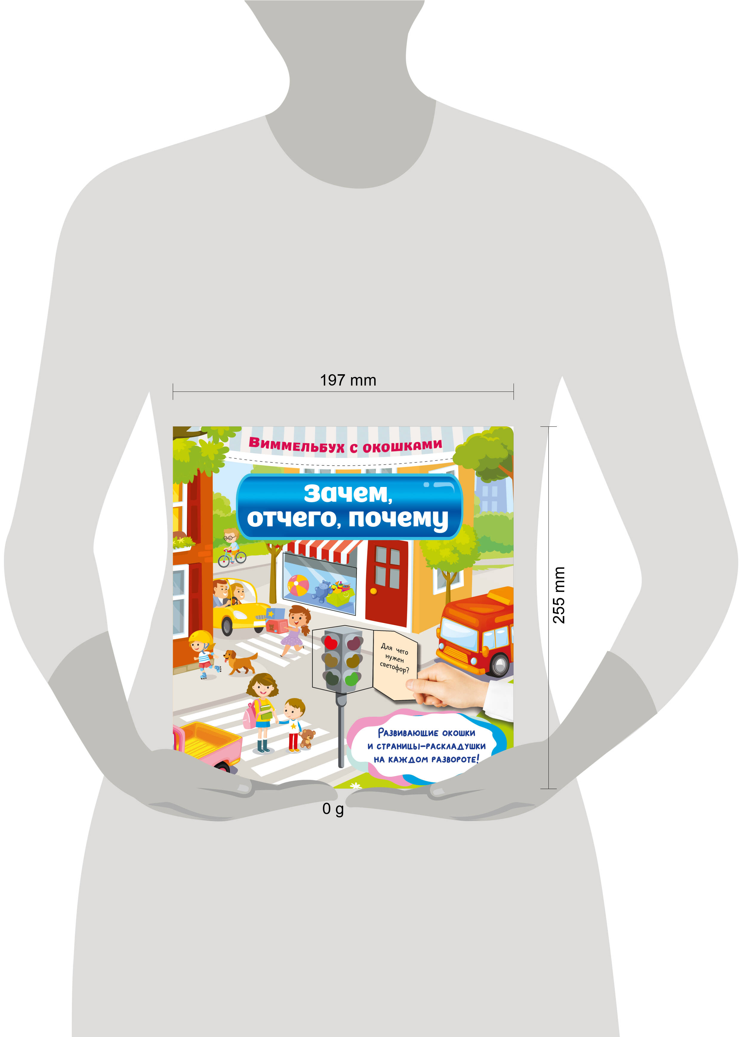 Как всё устроено в доме? Как вести себя на улице? Зачем нужны светофоры и пешеходные переходы? Где покупают продукты? Как вести себя на детской площадке? Яркая книга-виммельбух с окошками и секретиками «Зачем, отчего, почему» - прекрасный подарок для самых любознательных почемучек. Малыш узнает много нового и интересного об окружающем мире, а также поиграет в развивающие игры, потренирует мелкую моторику, внимание, память и воображение. Книга выполнена из плотного картона, поэтому прослужит долго. Интерактивная книга-игра становится ещё более привлекательной благодаря отличному полиграфическому качеству. «Зачем, отчего, почему» - это одновременно развлекательная, познавательная и обучающая книга. Отличный выбор любящих родителей!