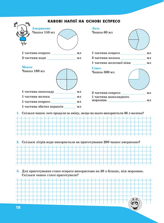 ВІДПОВІДАЄ ЧИННІЙ ПРОГРАМІ. Посібник має чітку та оригінальну структуру. Завдання зошита відповідають державним вимогам рівня загальноосвітньої підготовки учнів і допомагають розвинути навички: розв'язання задач різних видів; виконання дій за алгоритмом; обґрунтування дій, за допомогою яких розв'язується задача; логічного мислення. Сюрприз для батьків - відповіді до всіх завдань зошита. Їх можна вилучити, не пошкодивши при цьому посібник. Зошит можна використовувати в поєднанні з будь-яким підручником математики, як основний або додатковий дидактичний матеріал для роботи на уроках та вдома. Чому варто придбати Найкращий спосіб відпрацювати навички розв'язання ВСІХ задач, що містяться у програмі 5 класу з математики. Чіткі й зрозумілі пояснення та деталізовані приклади розв'язків та обчислень. Підходить для роботи в класі й для домашнього навчання. Можна використовувати в поєднанні з будь-яким підручником математики. Повністю відповідає чинній програмі. Містить рішення та відповіді на ВСІ завдання. У якості додатка - корисні наліпки з важливим теоретичним матеріалом 5 класу.| Серия | , |