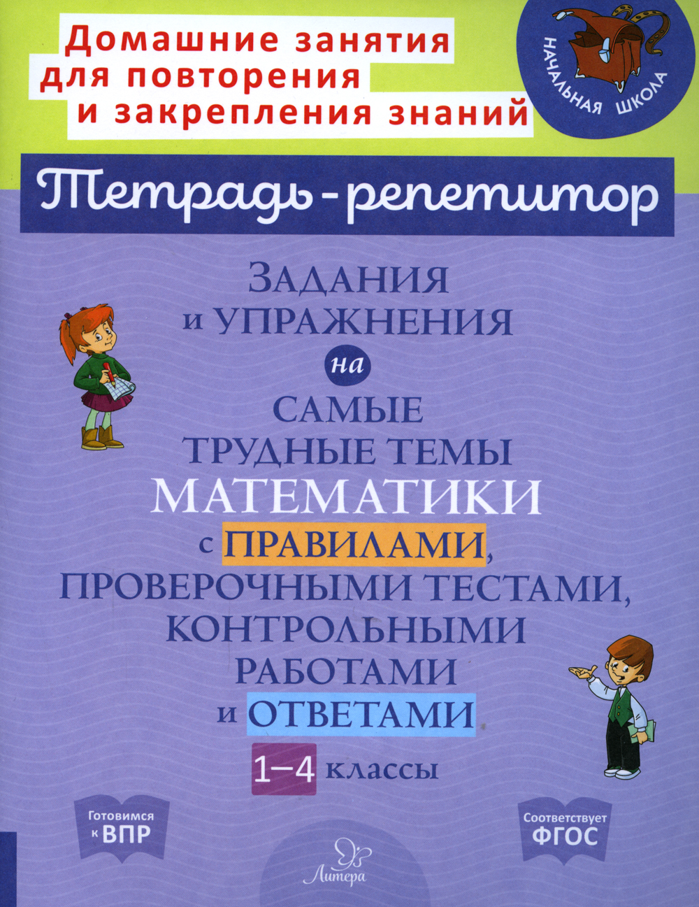Задания и упражнения на самые трудные темы математики с правилами, проверочными тестами, контрольными работами и ответами. 1-4 кл
