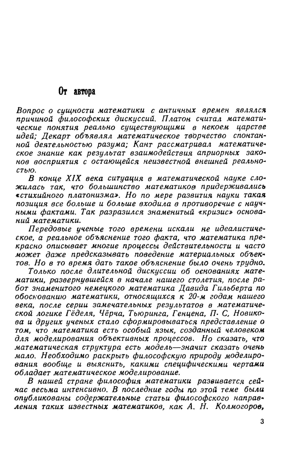Книга рассказывает о современных философских взглядах на математику, об аксиоматическом методе, пронизывающем сегодня всю математику, о тех каналах, по которым объективная действительность вторгается в математические структуры.