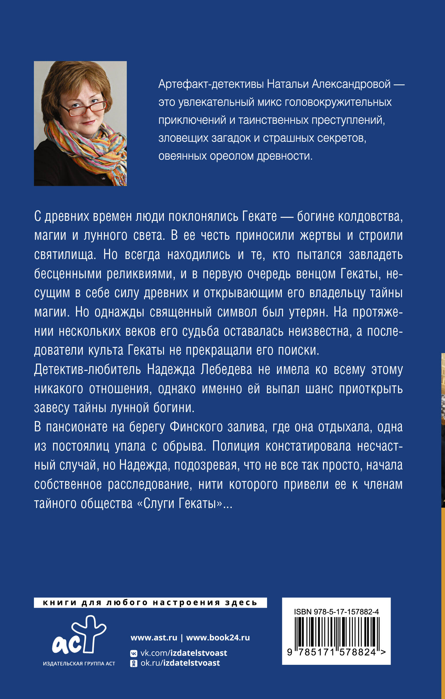 С древних времен люди поклонялись Гекате - богине колдовства, магии и лунного света. В ее честь приносили жертвы и строили святилища. Но всегда находились и те, кто пытался завладеть бесценными реликвиями, и в первую очередь венцом Гекаты, несущим в себе силу древних и открывающим его владельцу тайны магии. Но однажды священный символ был утерян. На протяжении нескольких веков его судьба оставалась неизвестна, а последователи культа Гекаты не прекращали его поиски. Детектив-любитель Надежда Лебедева не имела ко всему этому никакого отношения, однако именно ей выпал шанс приоткрыть завесу тайны лунной богини. В пансионате на берегу Финского залива, где она отдыхала, одна из постоялиц упала с обрыва. Полиция констатировала несчастный случай, но Надежда, подозревая, что не все так просто, начала собственное расследование, нити которого привели ее к членам тайного общества "Слуги Гекаты"...| Издательство | Издательство "АСТ" |