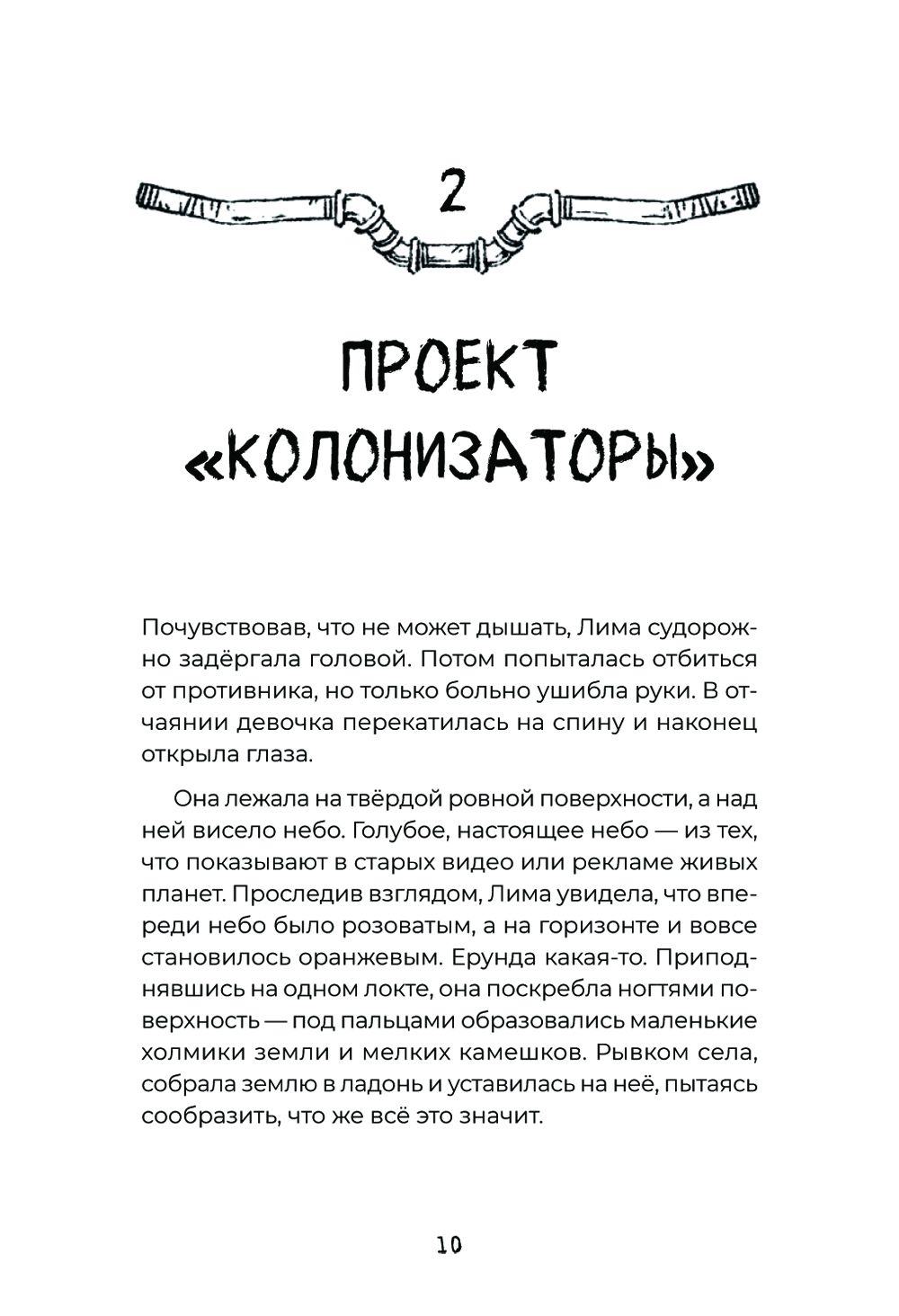 Лима - юная, бесстрашная и заботливая, Мика - её маленькая подружка, трогательная и искренняя, Раф - молодой мужчина, выглядящий как старик, банда «диких» и ещё дюжина грязных и испуганных детей и подростков. Что у них общего? У каждого из них есть какой-то дефект - мутация, из-за которой они изолированы от общества и прозябают в канализации межгалактической станции. А ещё именно их поймали и отправили на неизученную и жестокую планету Терра. Теперь маленькие колонизаторы должны исследовать её и выяснить, пригодна ли она для жизни. Но удастся ли им выжить самим, если раньше это никому не удавалось? Для детей среднего школьного возраста.| Издательство | Питер |