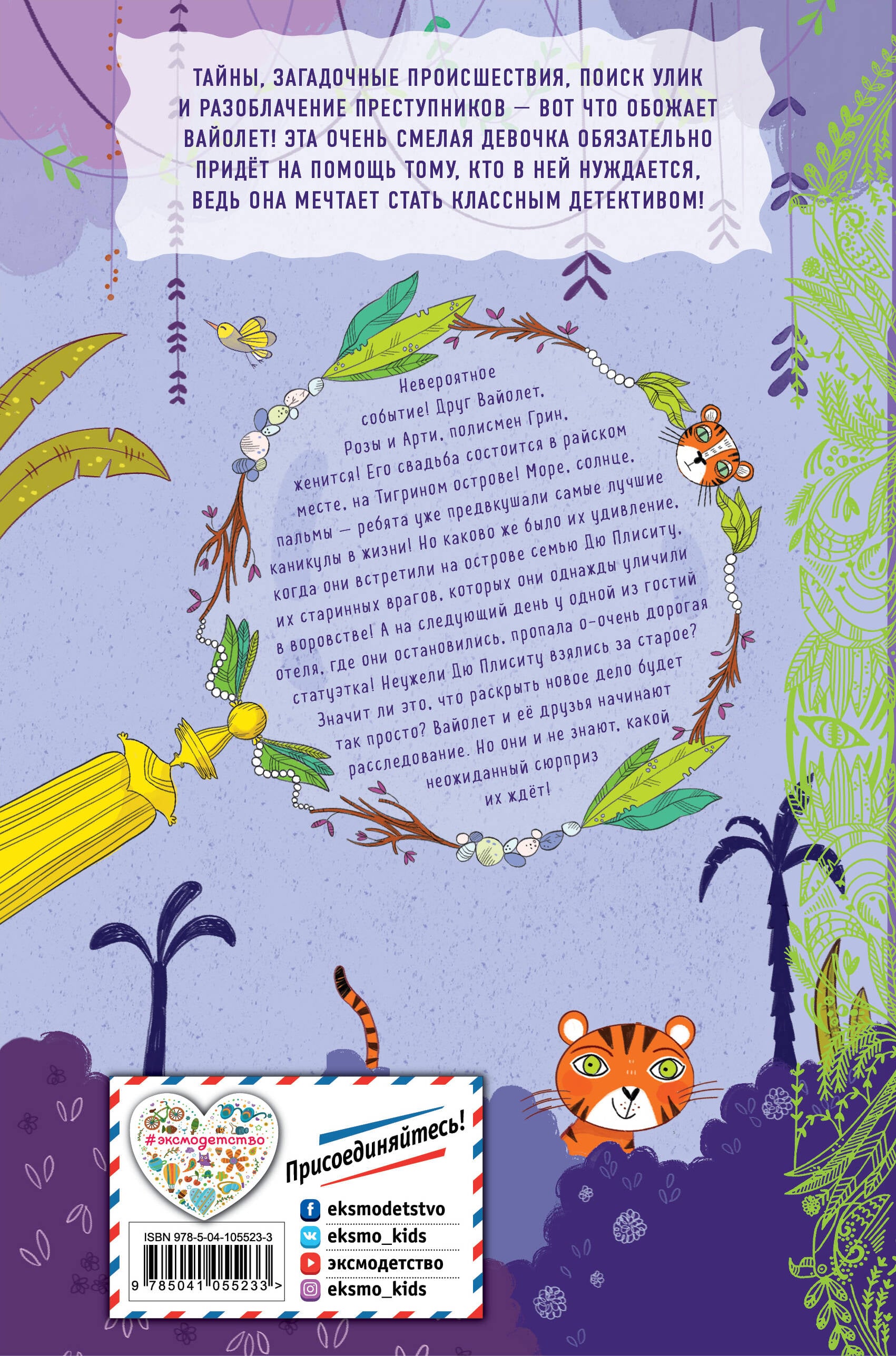 Ура! Потрясающая новость! Друг Вайолет и верный соратник по детективной работе, полисмен Грин, женится! Он и его невеста пригласили Вайолет, Розу и Арти на прекрасный Тигриный остров. Пальмы, море, солнце - что может быть лучше?! Но как же удивились ребята, встретив в этом райском уголке своих старинных врагов, семью Дю Плиситу! Юные детективы уже ловили их на краже! И надо же было такому случиться, что у их соседки по отелю, почтенной старушки, пропала ценная статуэтка. Неужели Дю Плиситу взялись за старое? Ребята решают вывести их на чистую воду! Но что, если на этот раз преступник окажется намного хитрее? Пятая книга серии. Это яркий, невероятно увлекательный и стильный детский детектив, который поможет ребёнку полюбить читать! В книге есть интерактивные элементы, которые делают её ещё интереснее: карта, портретная галерея, схема расследования преступлений. Внутри о-очень много фиолетовых иллюстраций! Идеально для поклонников серий «Мейзи Хитчинс» и «Приключения кота-детектива».| Издательство | ООО "Издательство "Эксмо" |